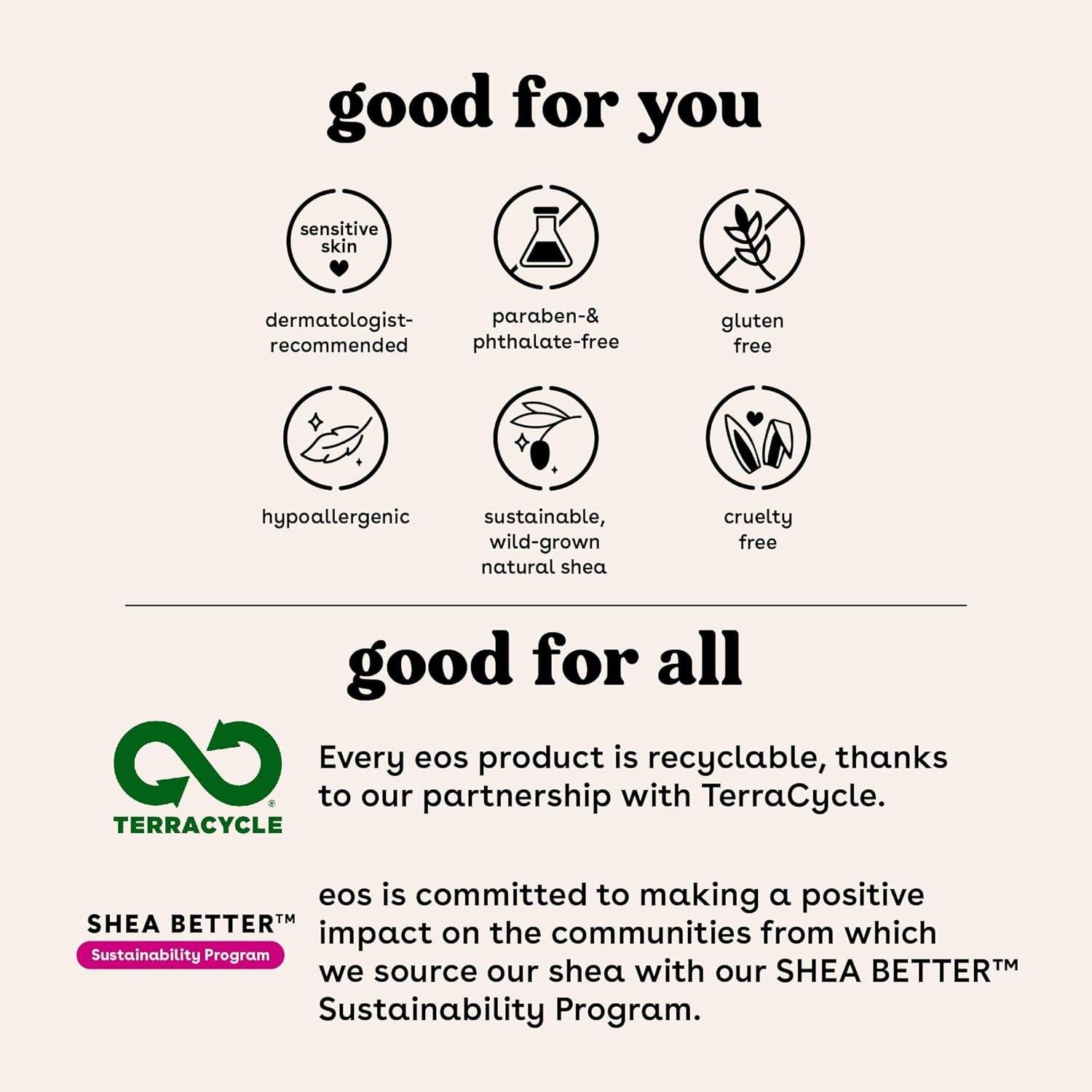 - SELF CARE WITH SUSTAINABLY-SOURCED INGREDIENTS: eos lip balms have wild grown, sustainably sourced, 100% natural shea butter and oil to leave your lips smooth and nourished