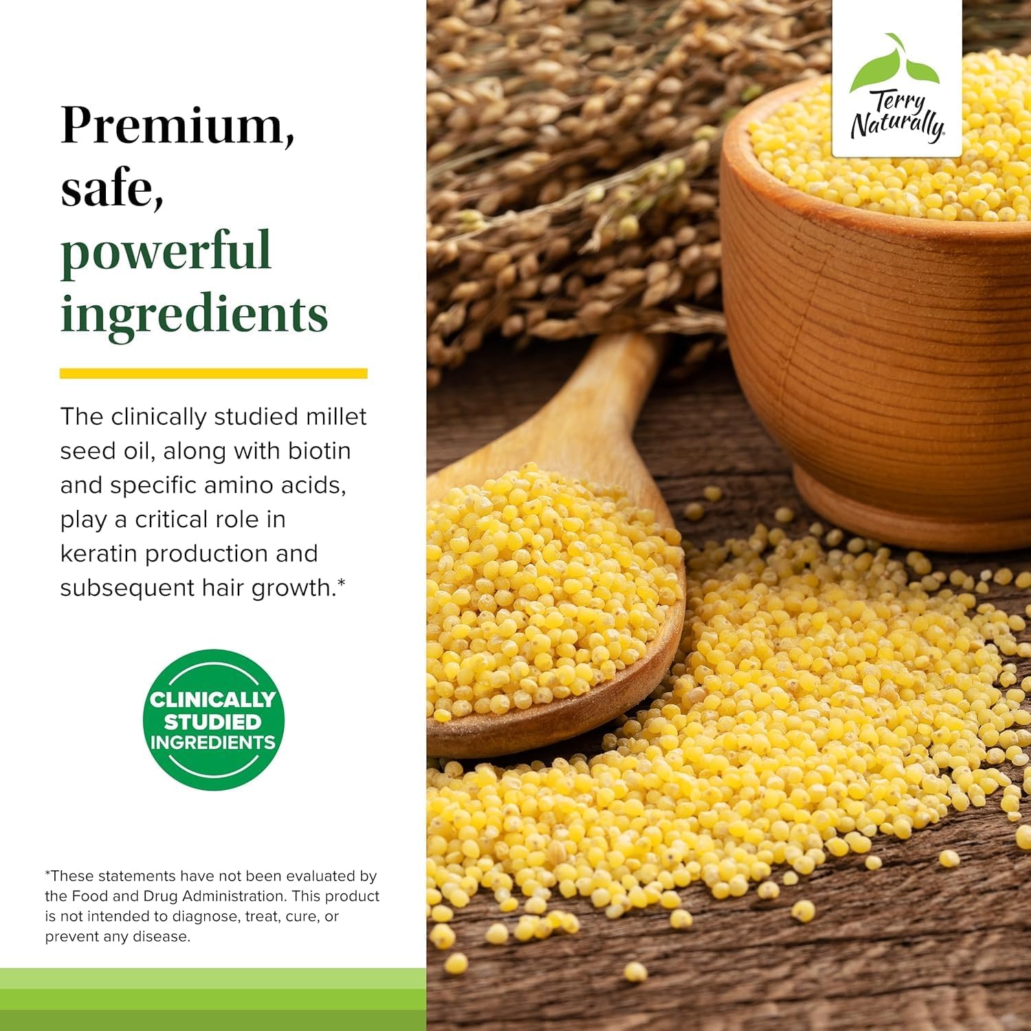 - Millet Seed Oil for Keratin Support: Our healthy hair growth support supplement is rich in millet seed oil to aid in keratin production; contains zinc which supports the quality of dry and brittle hair