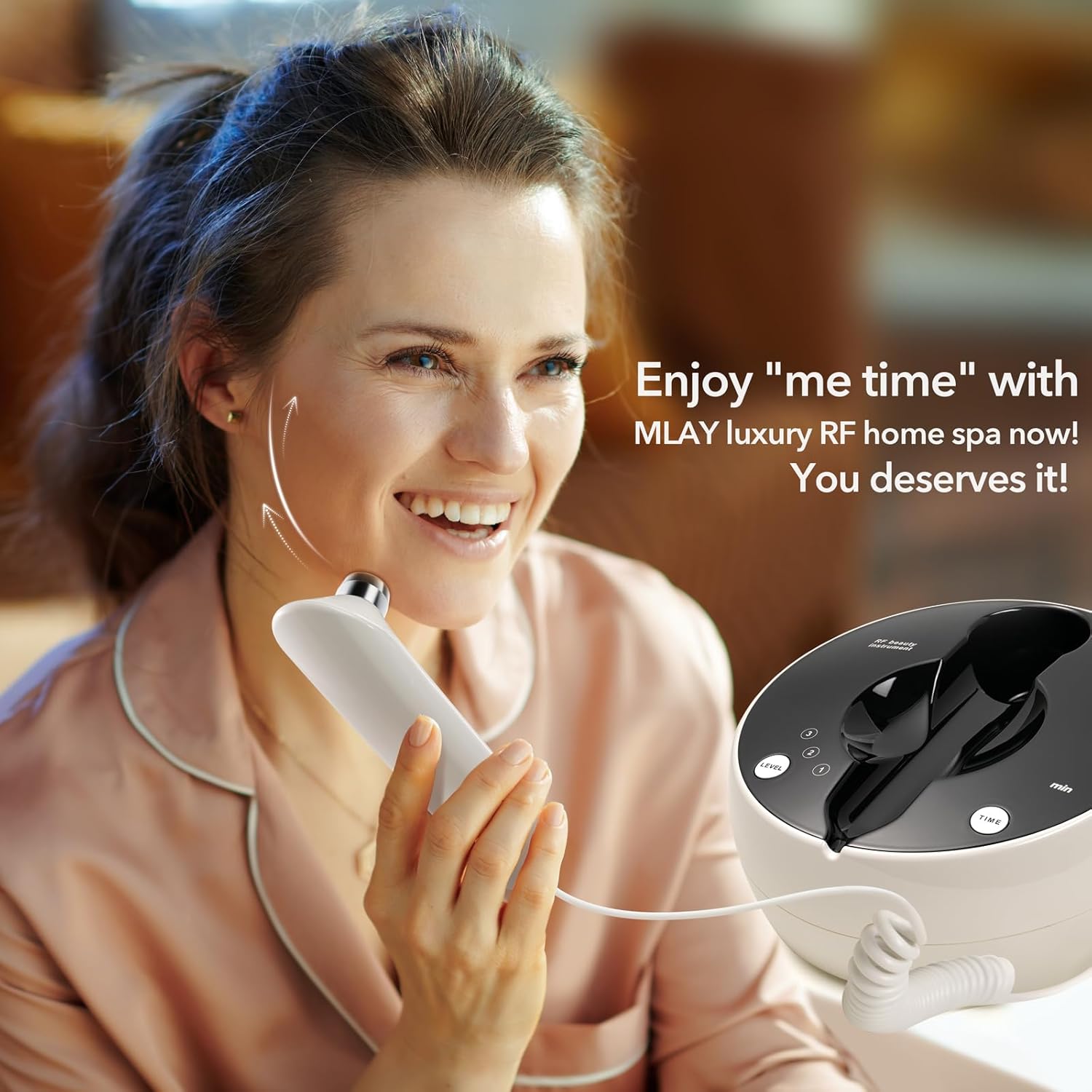 - Spa Vibes in Your House: Skip pricey salon appointments! The MLAY radio frequency machine features 3 energy levels + 3 timer settings for effortless use. This table model device lives on your vanity—use it during everning while watching tv. Enjoy a warm, relaxing massage that melts stress while rejuvenating-skin—perfect for bedtime self-care rituals. Results in firmer facial-contours, and minimized crow's feet within 8-12 weeks. Pro tip: Apply your favorite serum after the treatment!