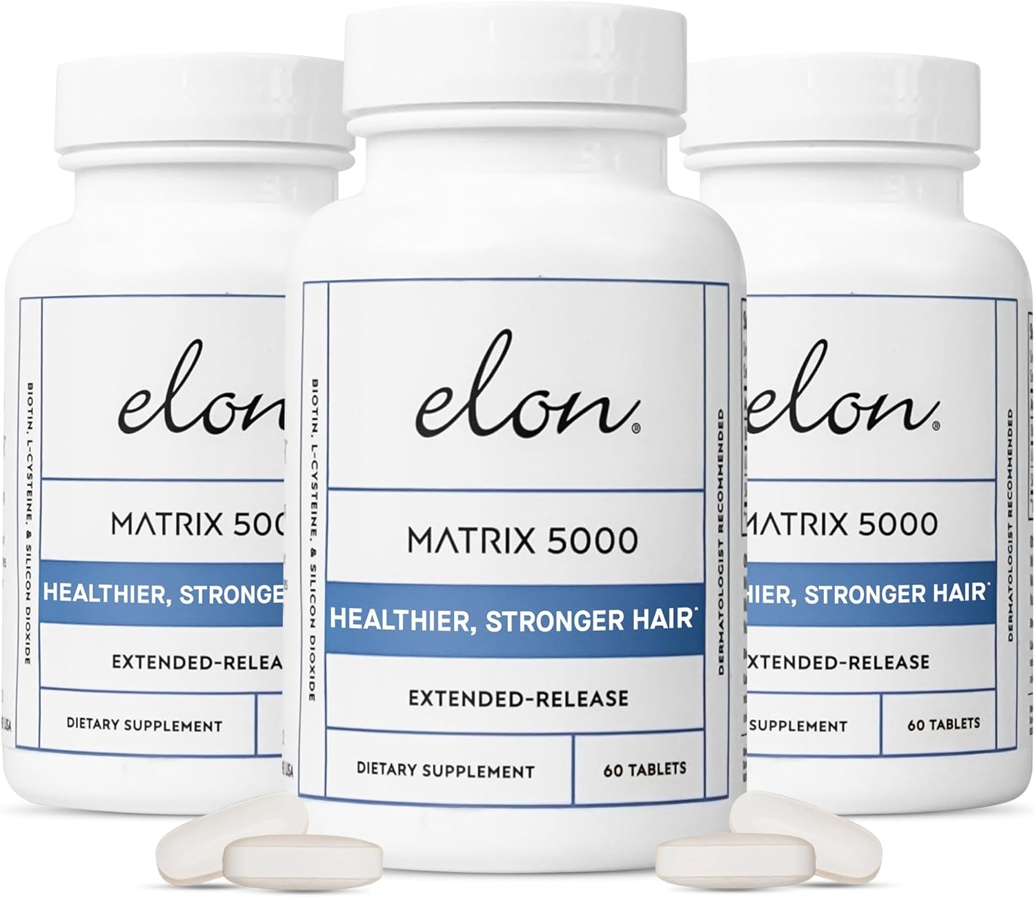 - ELON MATRIX 5000 β- Our Biotin 5000 mcg hair supplement contains the right spectrum of pharma-grade ingredients that support hair growth, boosts keratin and provides essential hair growth vitamins and minerals that promote stronger, longer hair.