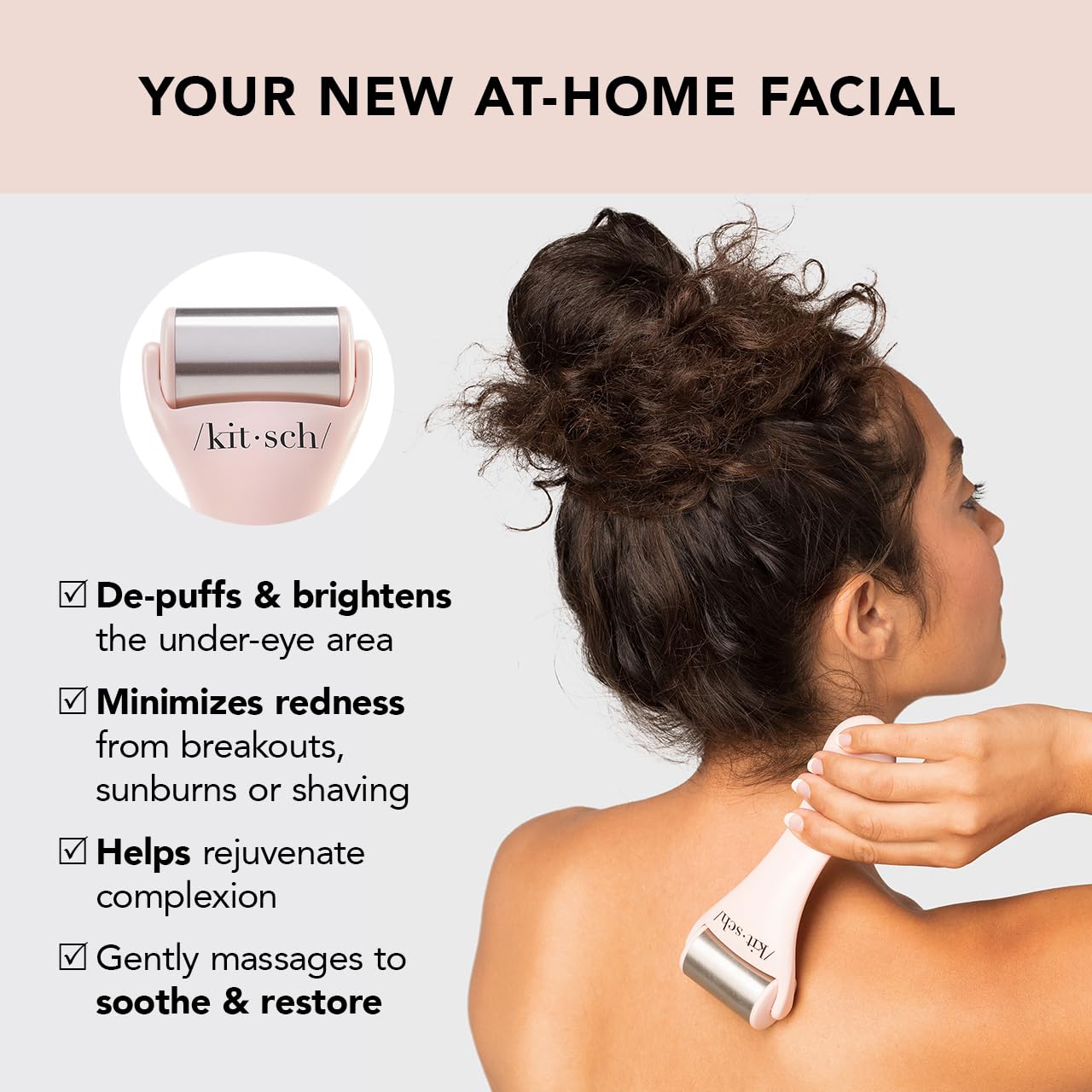Kitsch Ice Roller for Face – Stainless Steel Face Ice Roller to Reduce Puffiness, Redness & Headaches – Cooling Facial Roller for Skin Care, Irritation Relief & Spa-Like Experience at Home - Pink