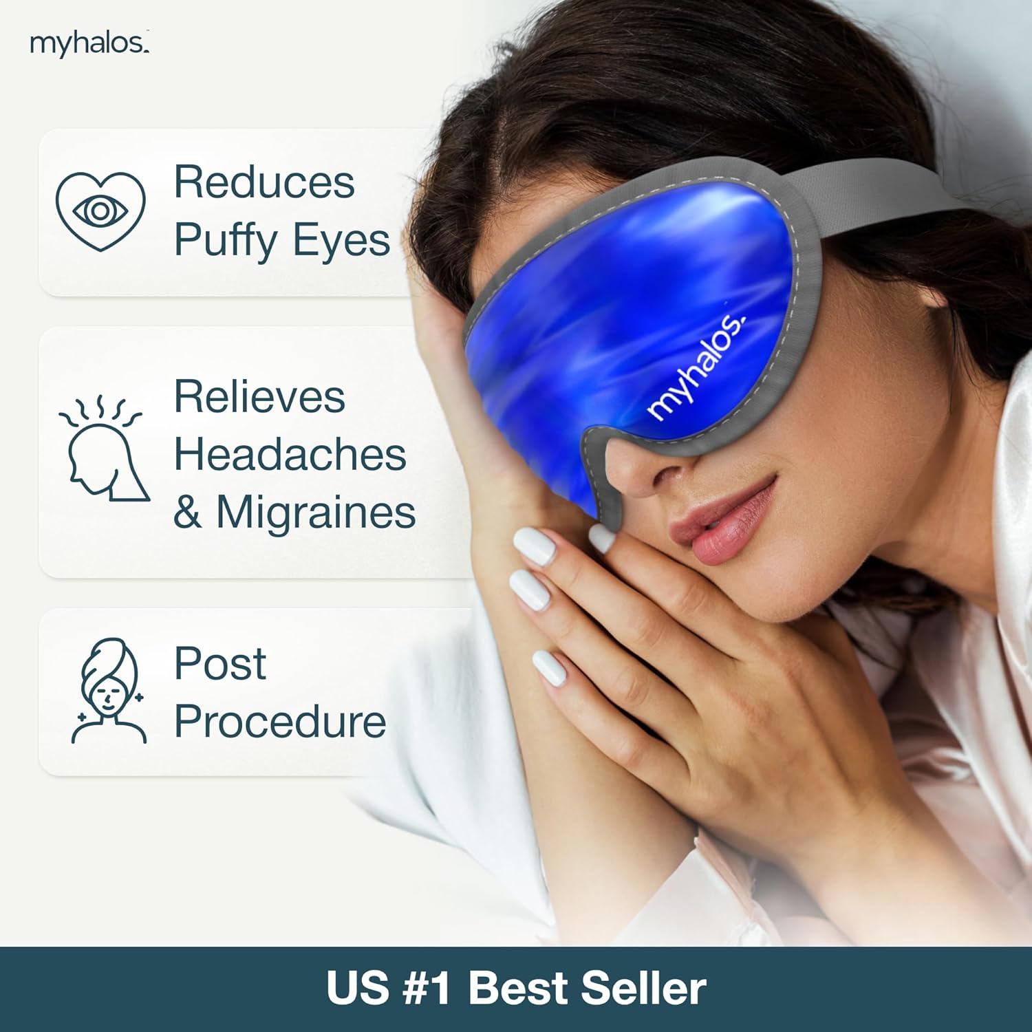 MyHalos® Gel Eye Mask - Reusable Cold Eye Mask with Adjustable Straps- Our Soothing Eye Gel Mask Helps Puffy Eyes, Dark Circles and Hangovers - Our Eye Ice Pack Also Relieves Sinus Pain & Headaches