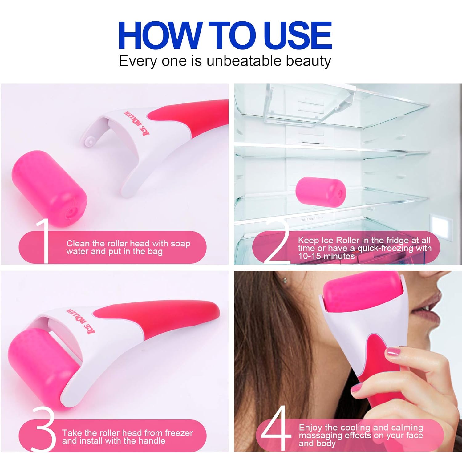 - ELIMINATE EYE PUFFINESS: Ice face roller wake you up in the morning, soothes your puffiness with the cold but bearable feeling. You’ll definitely feel the difference after a couple of rolls along puffy eyes and face. Also, it’s very neat and will not cause a watery mess as you use it