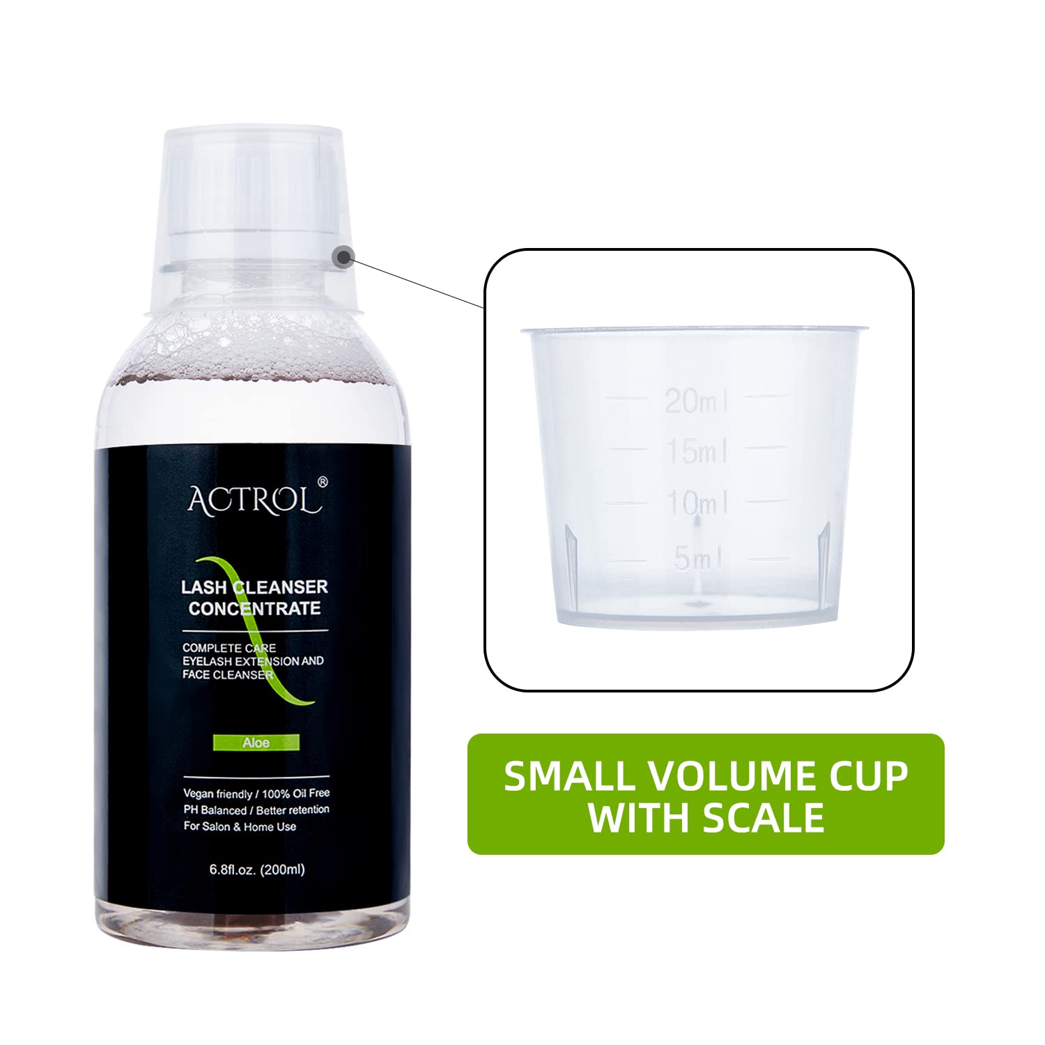 Eyelash Cleanser Concentrate 200ml Aloe Professional Lash Shampoo Foaming Cleanser Lash Wash Concentrate for Extensions Lashes with Salon Home Care-Makes 40 Bottles