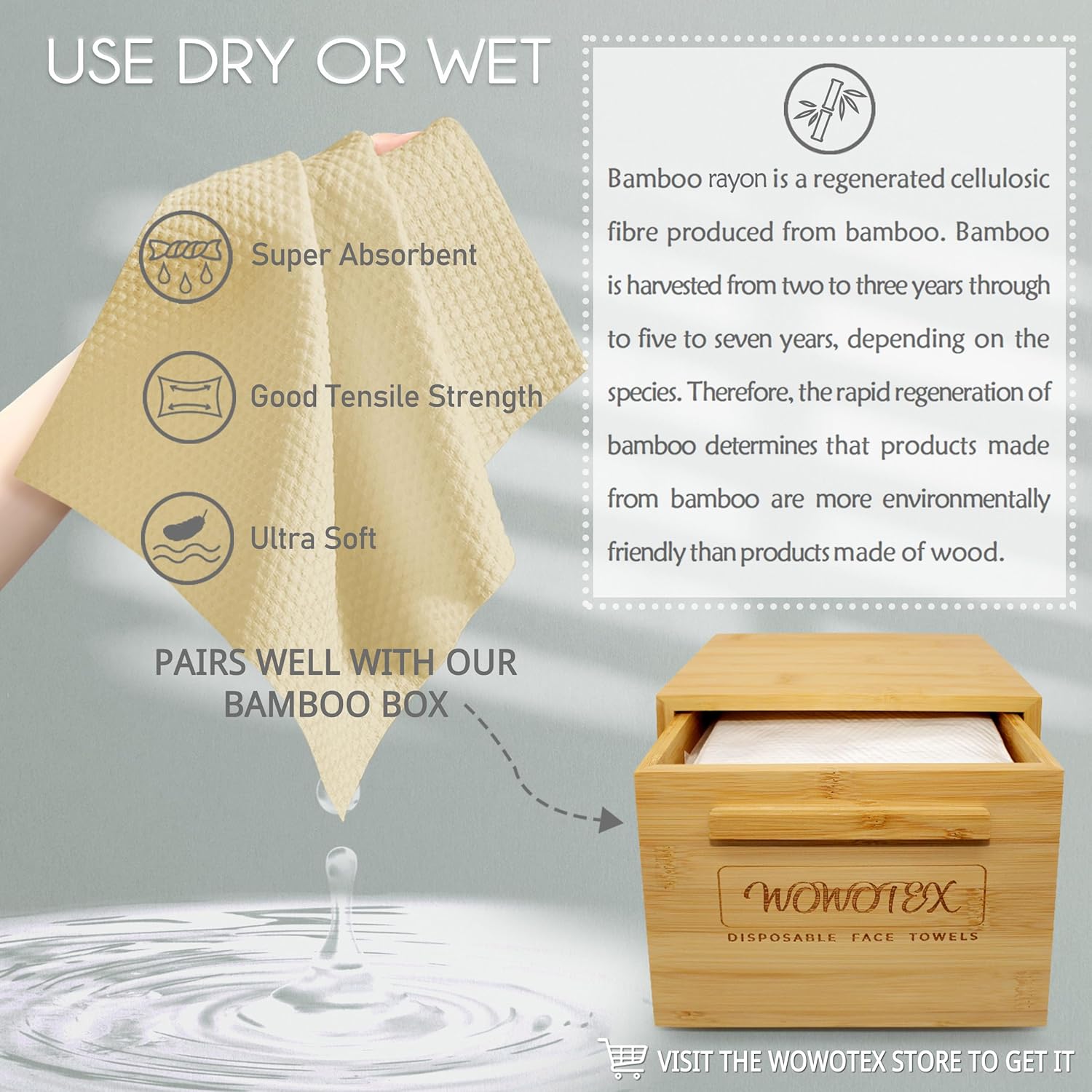 • EXCELLENT FABRIC : WOWOTEX face towel is made of bamboo rayon which is 100% biodegradable. WOWOTEX face towel can be used wet or dry, our face towel is super soft and highly absorbent, with good tensile strength, which can bring users a high quality user experience.