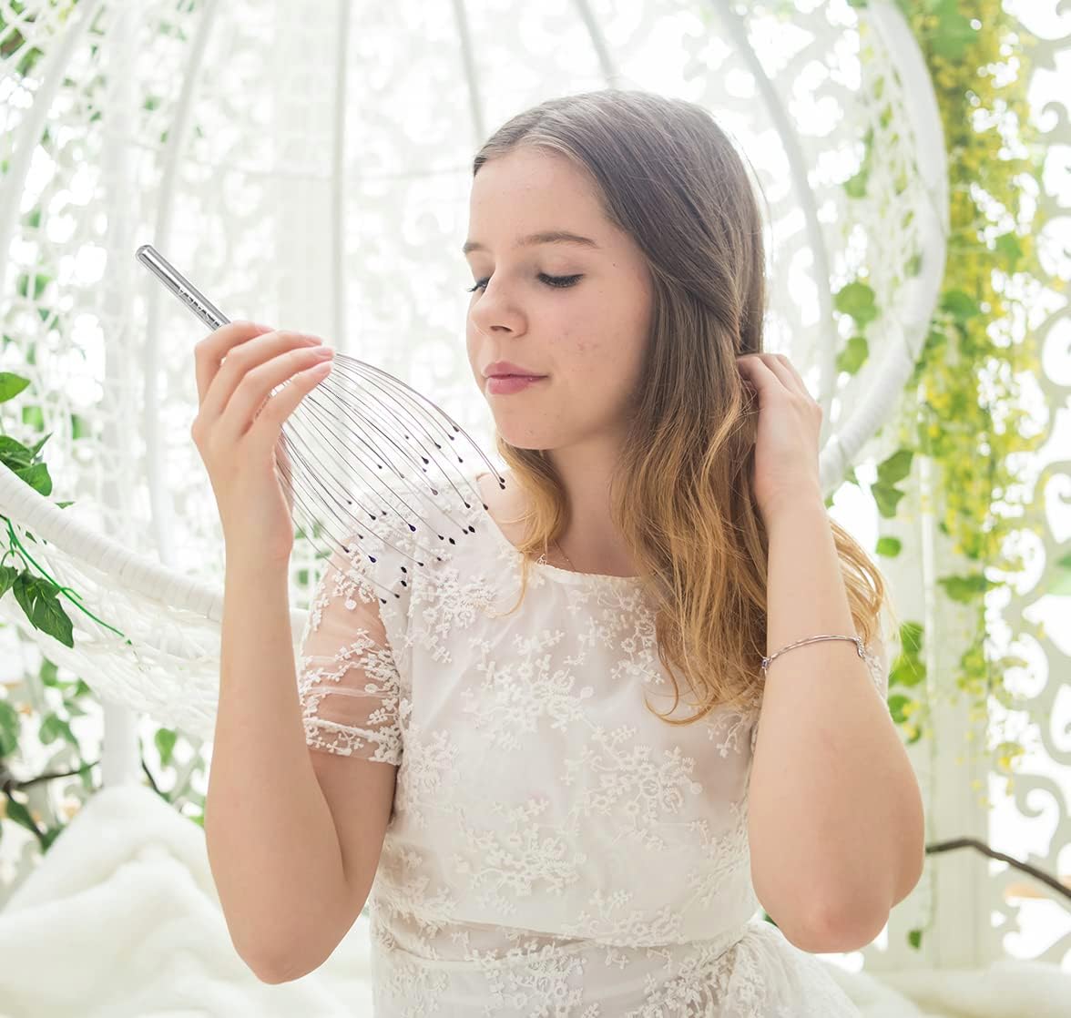 - [Easy to Use] – Put the massage spider on your head, gently move the massager up and down, or in a circular motion over your scalp. The flexible arms meet different head sizes.