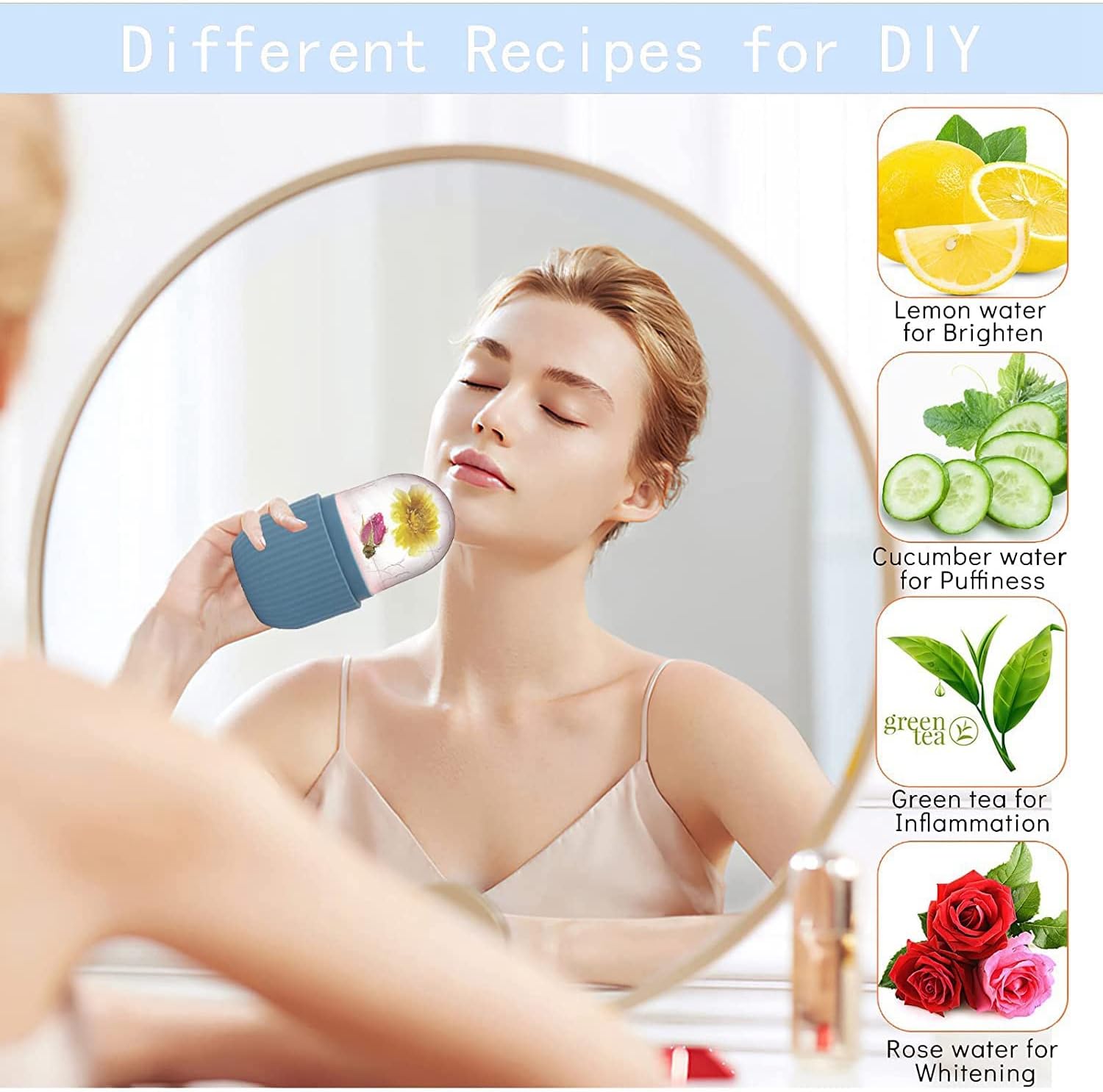 - 💎【IMPROVE SKIN】Facial ice rollers are very useful for improving skin conditions. You can use whitening lemonade, green tea, relieve the pressure of cucumber water, coconut milk, etc. to improve the skin, thereby creatively customizing recipes according to your skin needs.