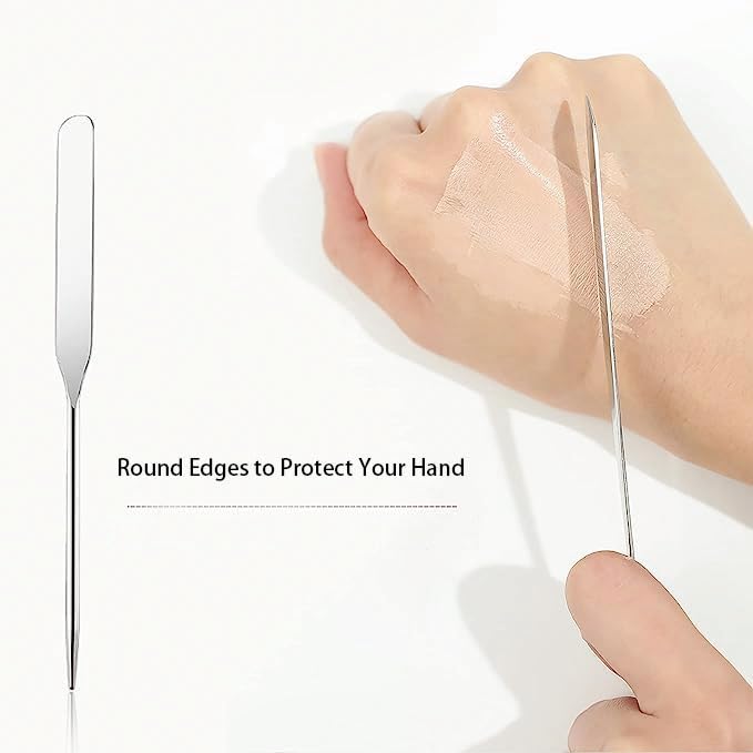 Makeup Spatula Set Stainless Steel, Make Up Tools Mini Mixing Tray with Finger Ring, Makeup Paint Palette, Pack of 3