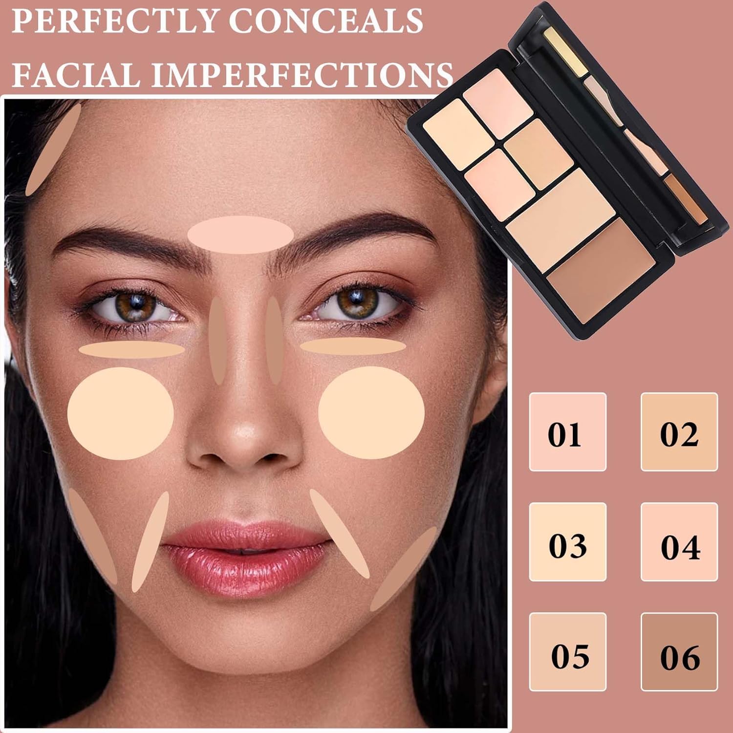 - š¦ćEasy to UsećConcealer contour palette's texture is light and delicate, very easy to apply makeup, close to the skin, the makeup effect is natural and glossy, six colors can be based on their own skin tone with the freedom to mix and match the color, more in line with your skin.