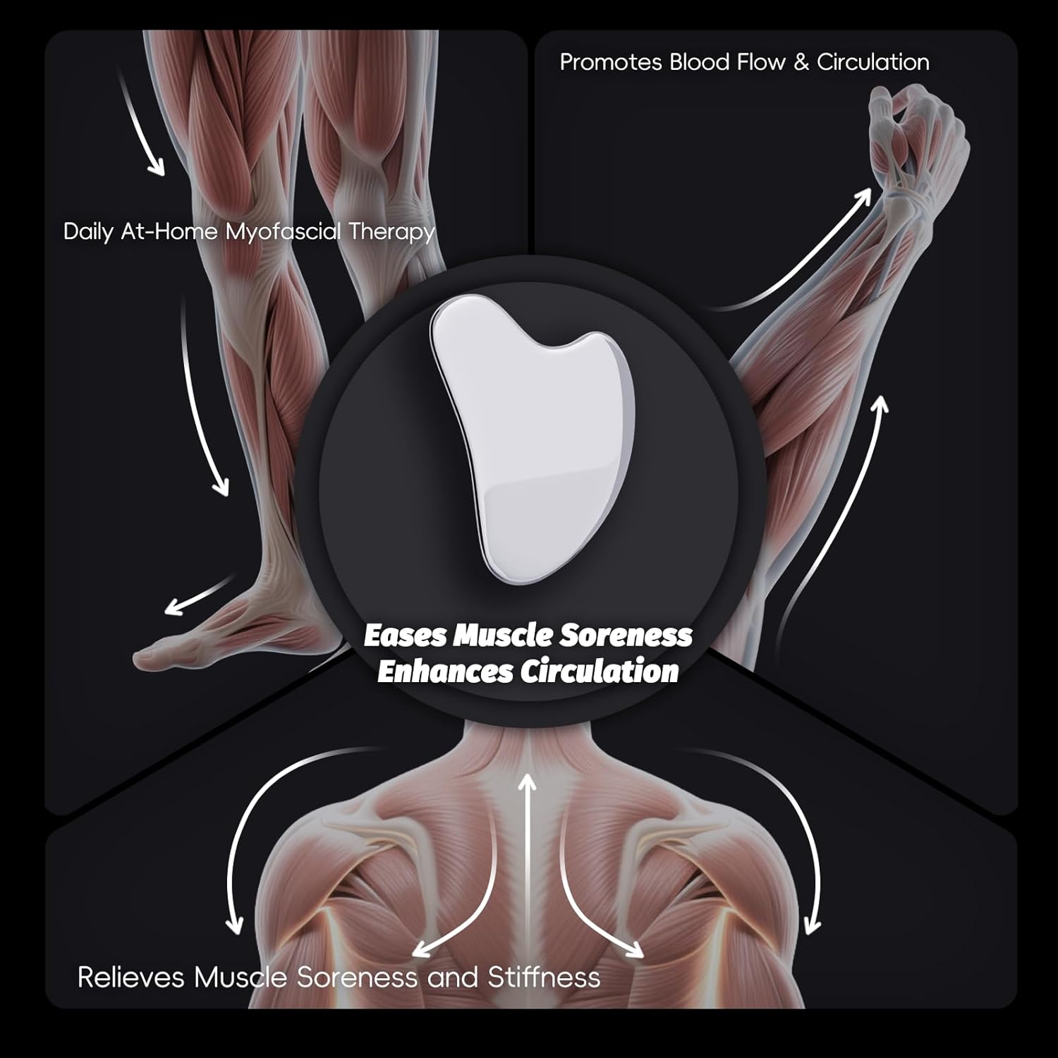 - Full-Body Myofascial Therapy Tool: The gua sha scraper glides across tight areas like shoulders, back, arms, or legs. Supports fascia release, blood flow, and recovery after workouts, long sitting, or repetitive strain—no electricity, just effective manual care.