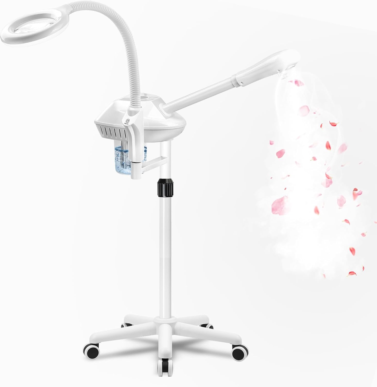- 【Removable Standing Facial Steamer】The height of this standing facial steamer can be adjusted from 36-52 inches, the nozzle can be rotated 360°, removable 650ml water cup, convenient water spout, mobile facial steamer with wheels allows you to lie down or sit down to enjoy the spa aromatherapy.