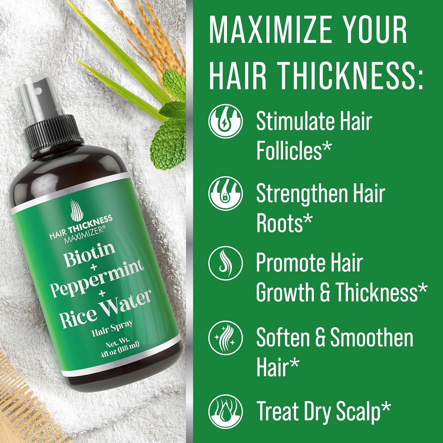 - Hair Growth Powerhouse: Our 3-in-1 Hair Growth Spray blends Biotin, peppermint oil, and rice water for hair growth; this Organic Rice Water will give your hair the boost it needs