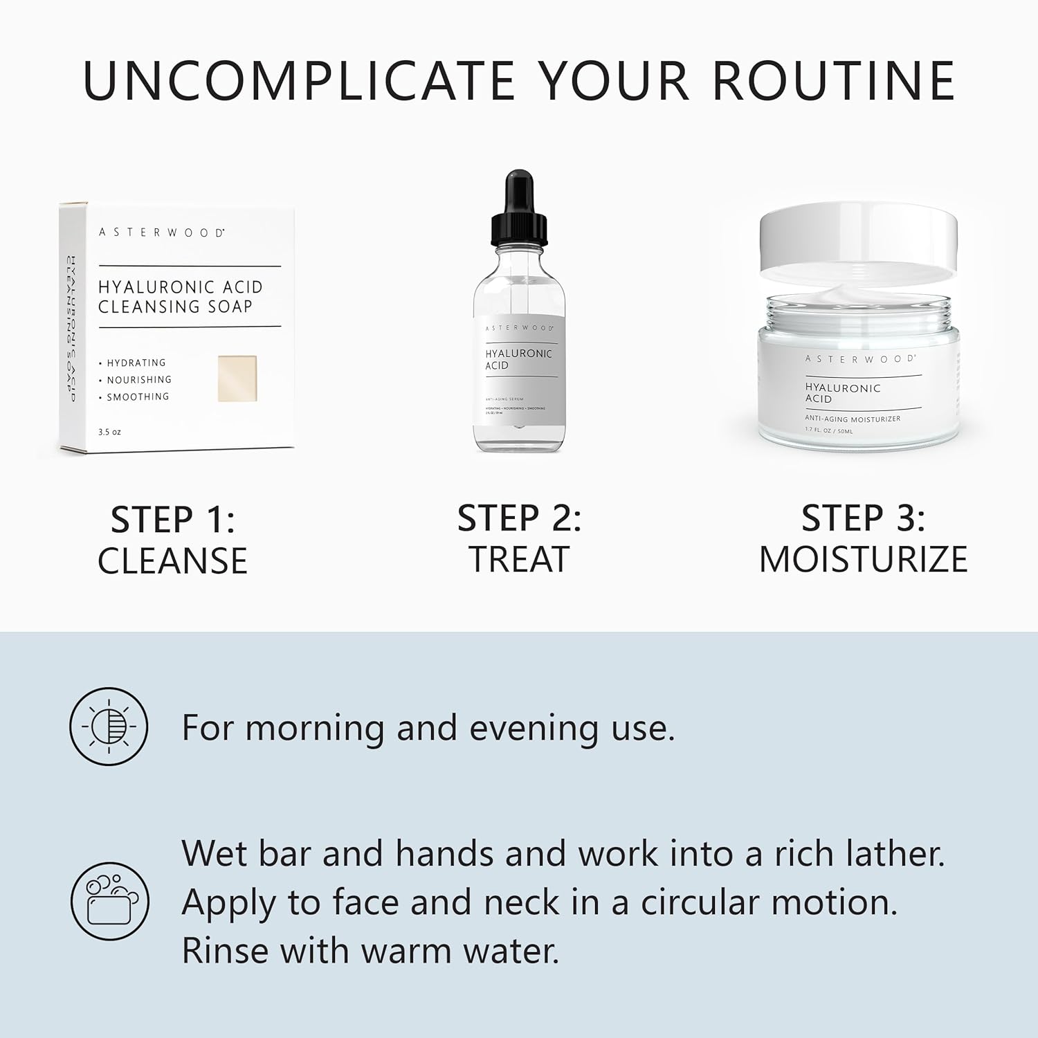 • Effective Routine: For optimal results, follow up with Asterwood's Hyaluronic Acid Serum and Moisturizer after cleansing with the soap bar, creating a comprehensive skincare routine that maximizes hydration and skin health.