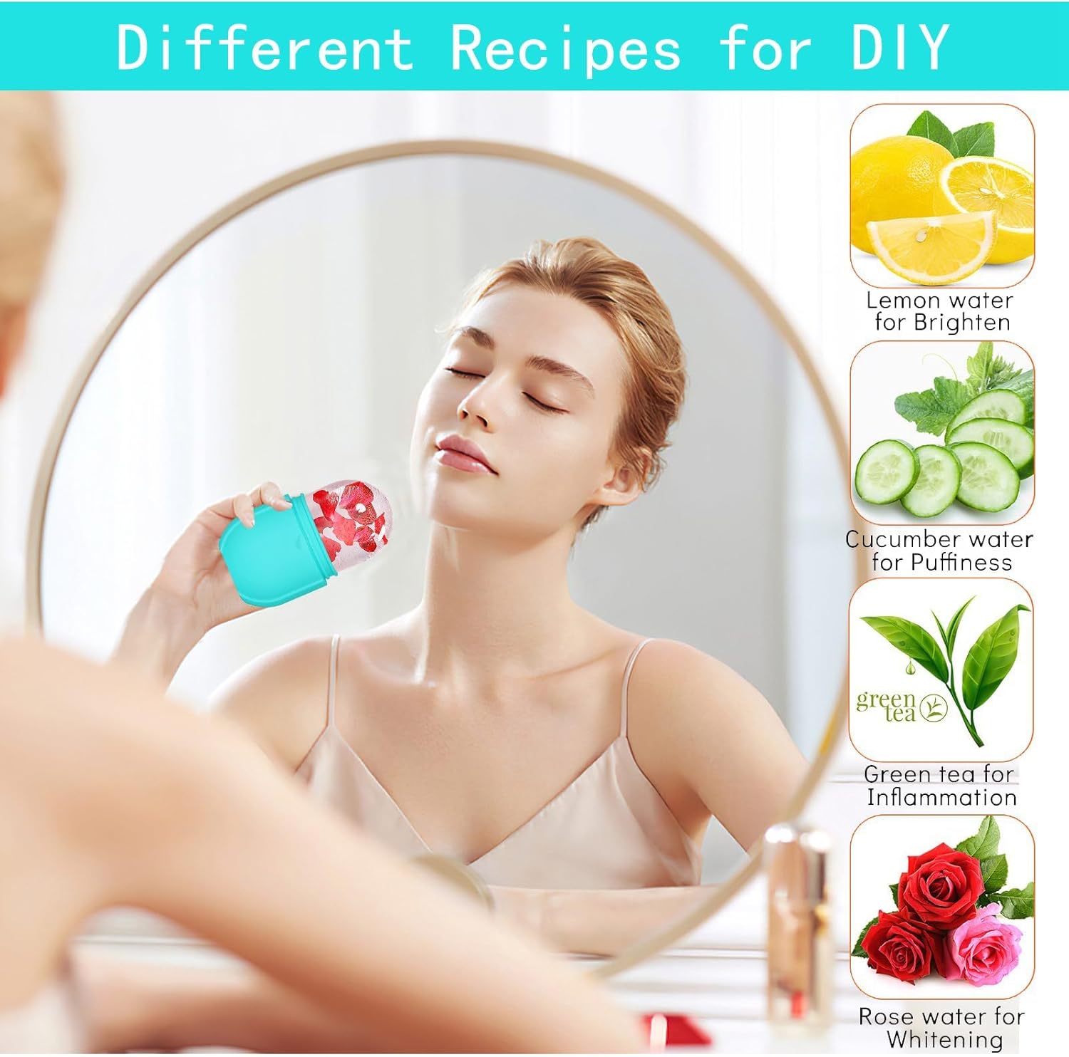 - 💎【IMPROVE SKIN】Facial ice rollers are very useful for improving skin conditions. You can use whitening lemonade, green tea, relieve the pressure of cucumber water, coconut milk, etc. to improve the skin, thereby creatively customizing recipes according to your skin needs.