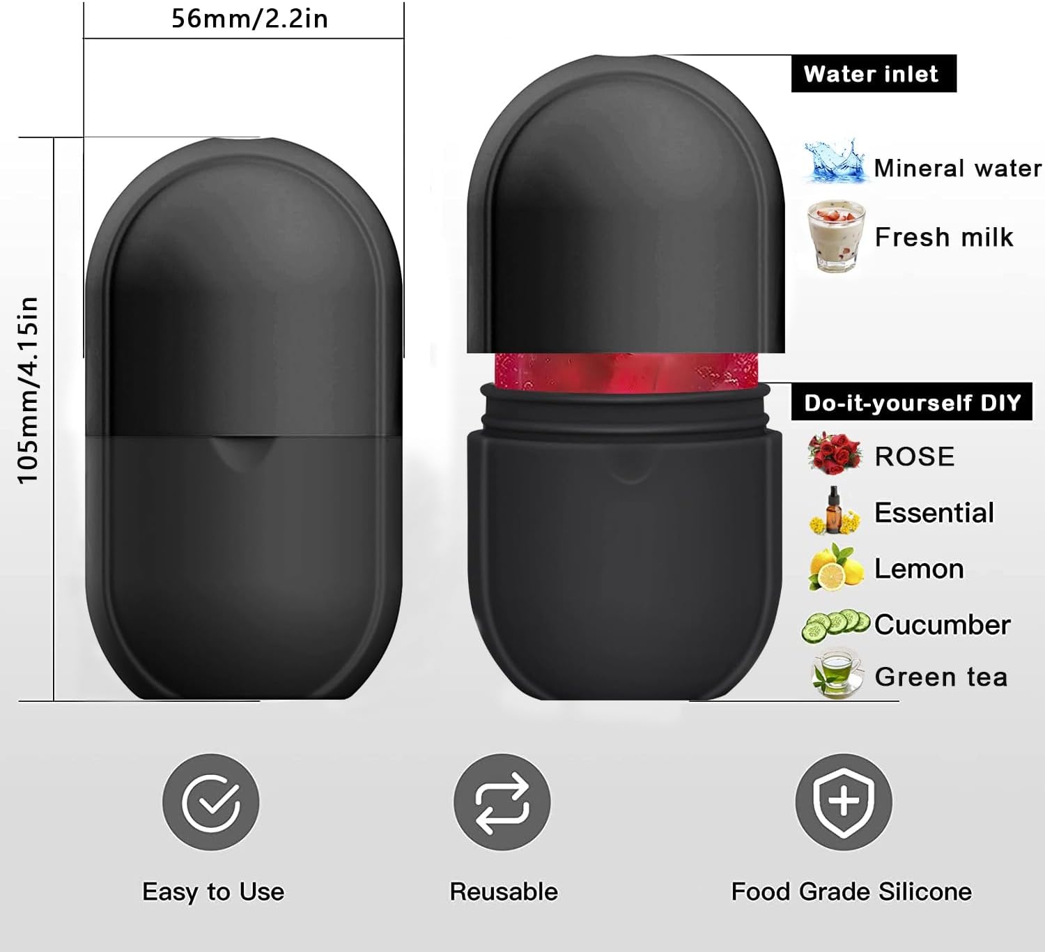 KOGITI Face Ice Roller & Mold - Beauty Facial Massage Tool for Puffiness Relief, Ice Cube Holder (New-Black)