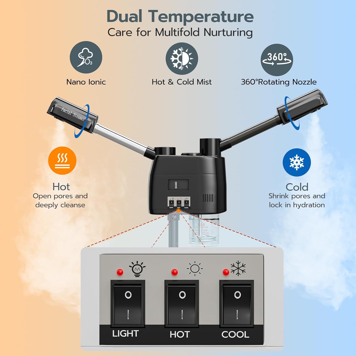 - [Keep Your Skin Healthy & Radiant] Equipped with hot and cold nozzles, Paddie 3 in 1 facial steamer offer gentle steam spray that can open up, unclog, shrink your pores and lock in hydration, use before skin care routine which help your skin absorb serum or essential oil easier.