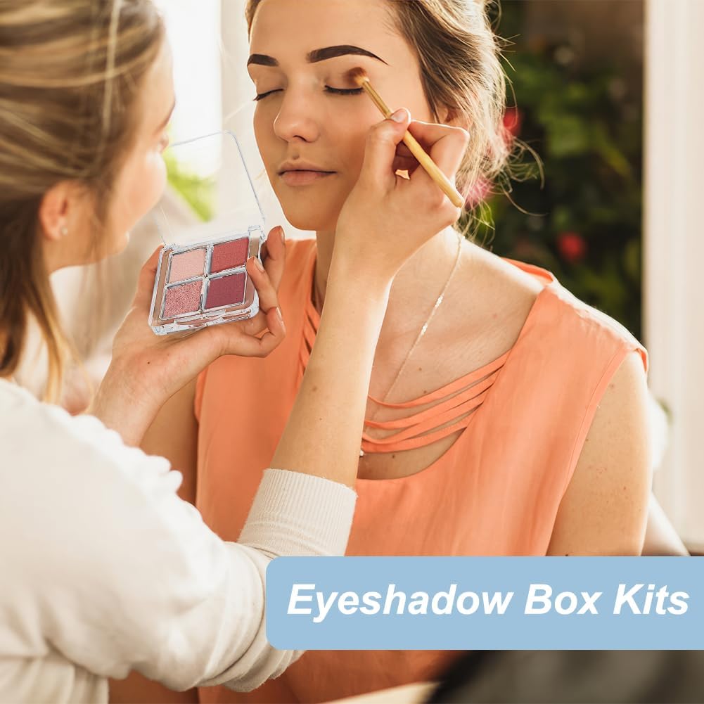 - Package Includes: Includes 4pcs eyeshadow boxes, 20pcs aluminum palettes, 30pcs PE film stickers with a embossing tool and stainless steel beading tweezer. Eyeshadow box is about 60.5x60x12mm/(2.38x2.36x0.47inch); square aluminum palette pans is about 22.5x22.5x3.5mm/(0.88x0.88x0.14inch).