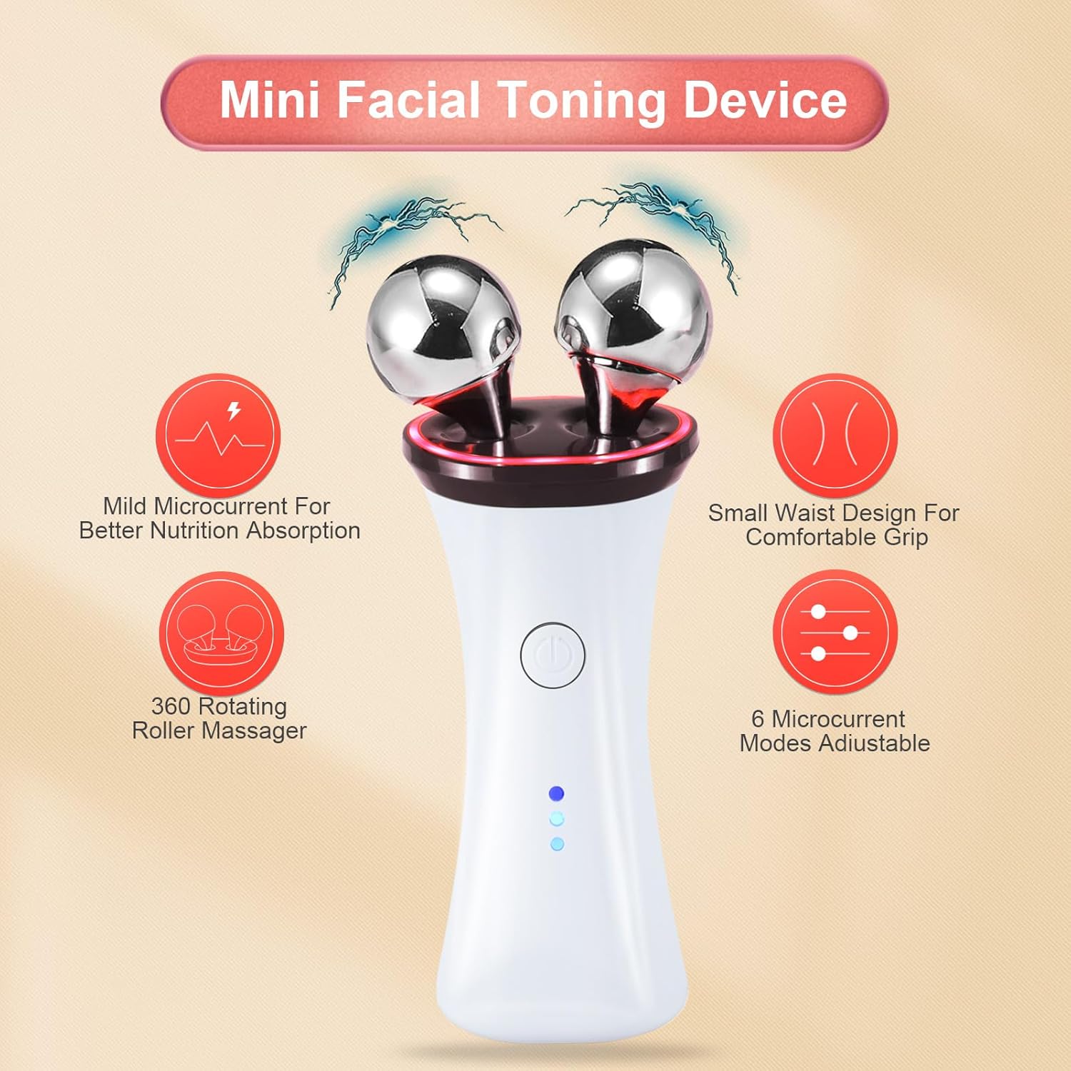 - 【Special Design】It contains two massage balls that can rotate 360°, and the LED aperture will light up when used. There are 6 gears, Press and hold for 2 seconds to power on, you can adjust according to the strength you want, and the effect will be better with moisturizing cream or face cream.