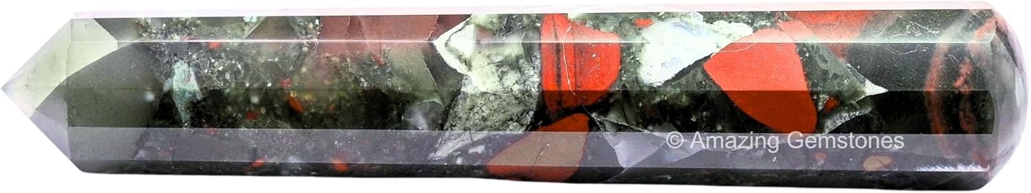 Amazing Gemstone African Bloodstone Crystal Wand Massage Stick - Pelvic Wand Gua Sha for Adults - Crystals and Healing Stones Massage Wands for Adults Gifts (Pointed)