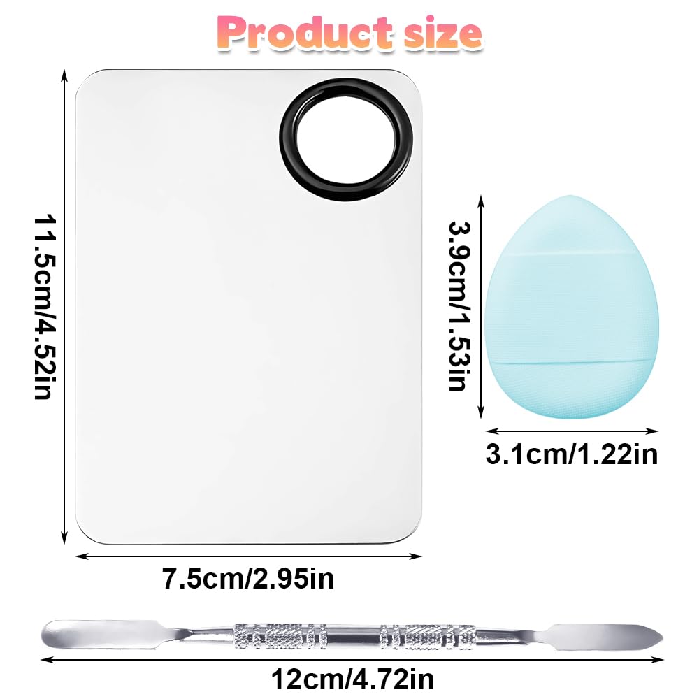 - 💄【Wide Application】You will receive a set of foundation palette + color mixing stick + six mixed color thumb puff, stainless steel palette can free your hands to achieve easy color mixing; color mixing stick double-ended design, you can dig, cut cream makeup products, clean and hygienic; thumb puff design is small, fingertip-sized, make-up is more convincing, make makeup more convincing, this makeup tools set is suitable for any cosmetic products, free to customize the eyeshadow, lipstick, concealer, foundation, pigment, etc., color and texture as you like