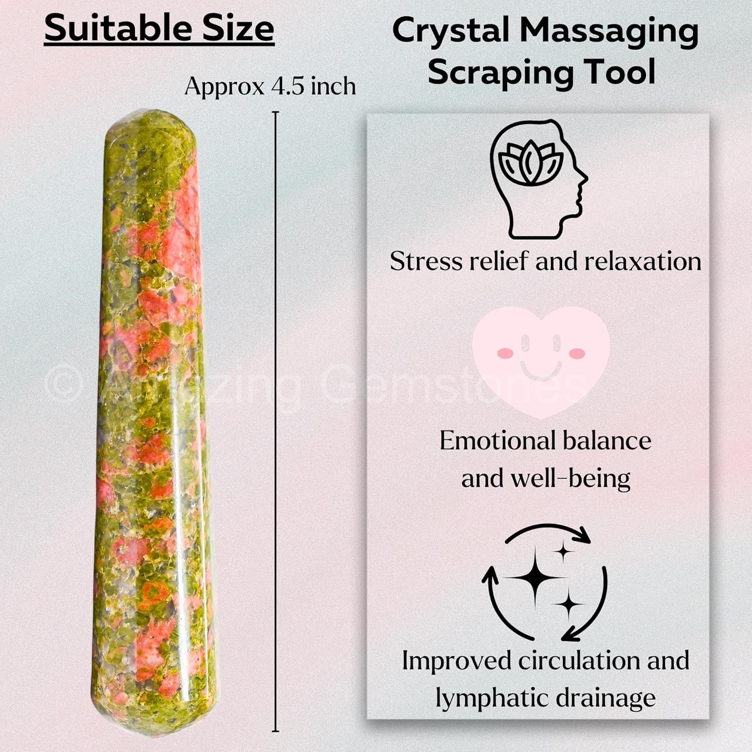Amazing Gemstone Unakite Crystal Wand Massage Stick - Pelvic Wand Gua Sha for Adults - Crystals and Healing Stones Massage Wands for Adults Gifts (Smooth)