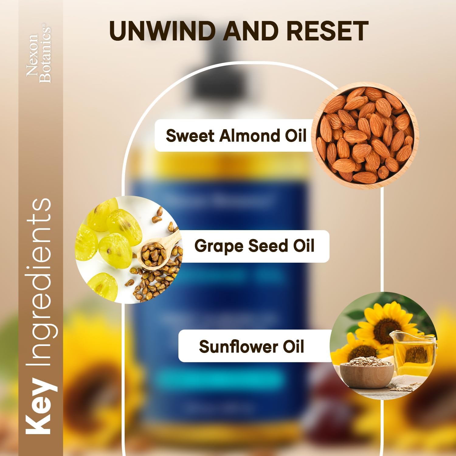 Unscented Massage Oil for Massage Therapy 8 fl oz - Refreshing and Relaxing - Natural Oils with Sweet Almond, Grape Seed and Sunflower Oil - for Men and Women - Nexon Botanics