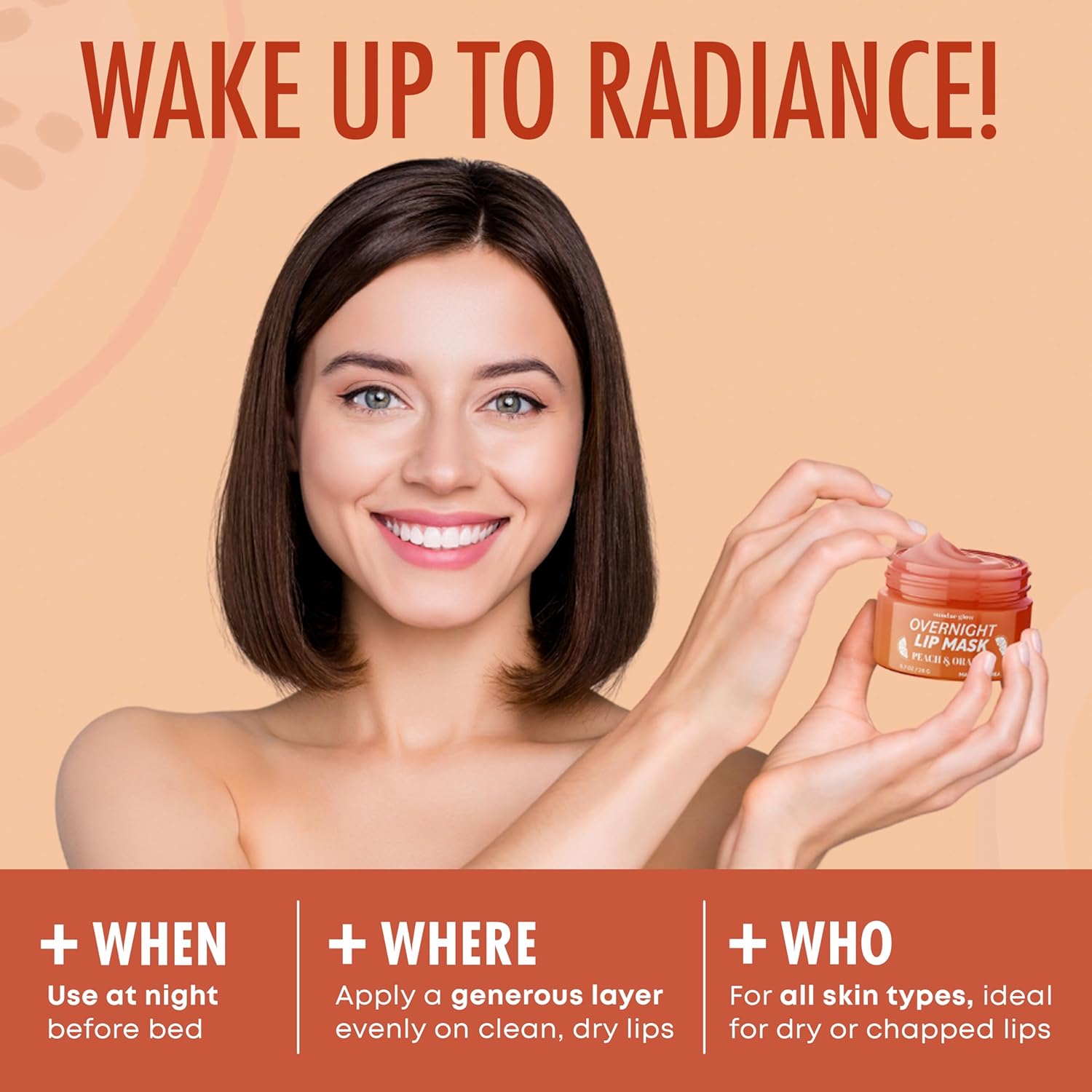 Lip Mask with Peach & Orange – Hydration, Lip Repair for Dry Cracked Lips & Smoothing – Dermatologist Tested, Korean Lip Care – 95% Natural, Clean Beauty, Cruelty-Free – 1 Pack