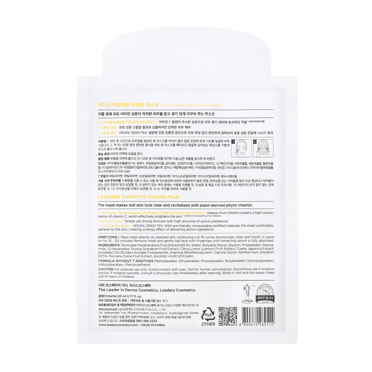 - VITALITY CARE β I'M PHYTO Vitamin Vegan Mask is infused with Vitamin C and other powerful illuminating ingredients. This mask helps to improve skin tone, revealing clear, healthy, and vibrant skin. Ideal for sensitive skin, these nutrient-rich facial masks leave smoother skin that appears softer and rejuvenated. Itβs a must-have skincare product for enhanced skin vitality. Revitalize your skin complexion with plant-derived ingredients that enrich your skin health.
