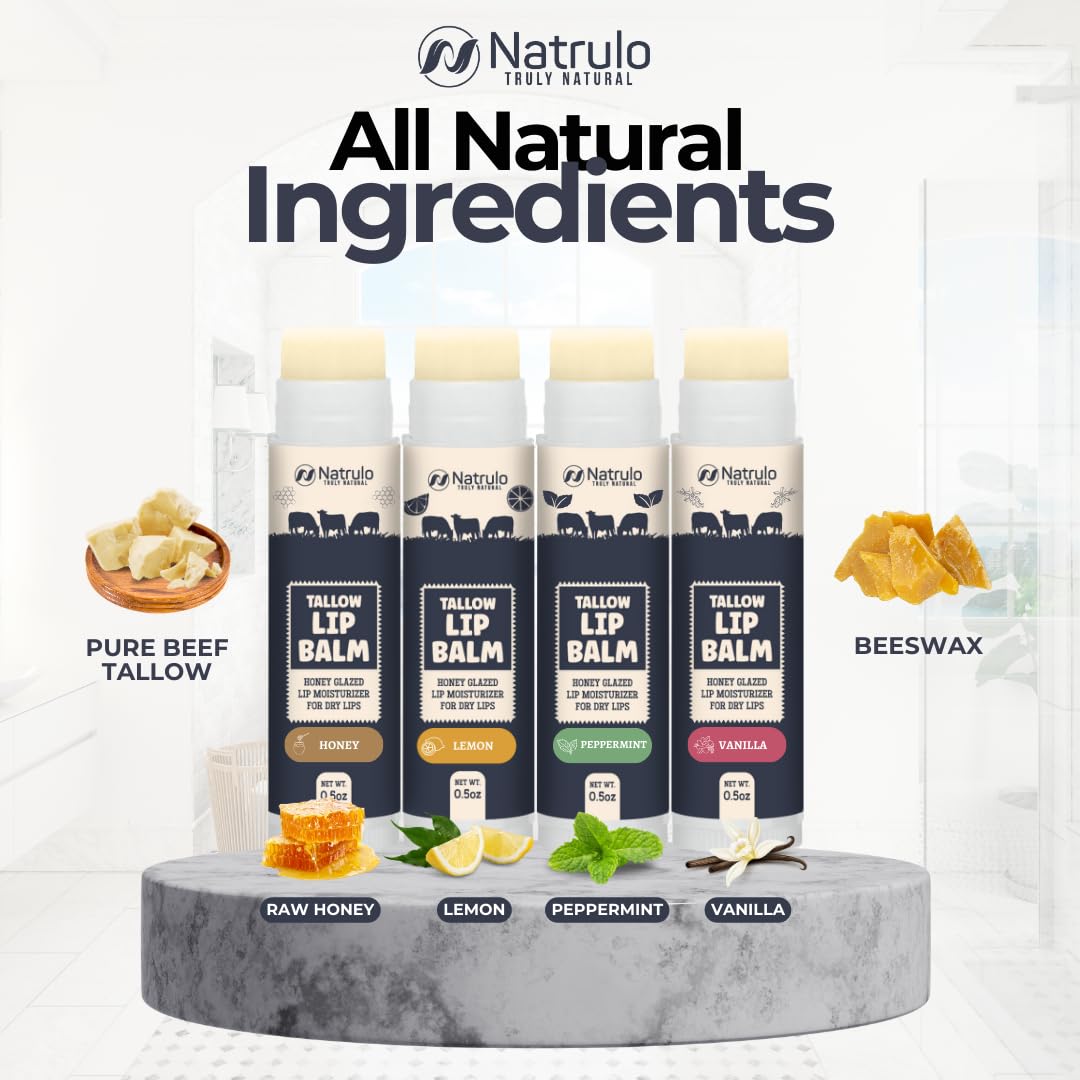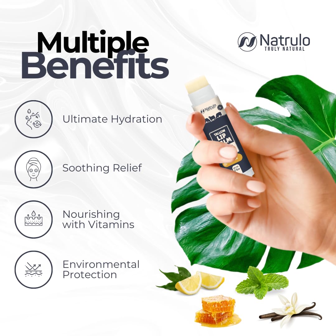 - INTENSELY HYDRATING FORMULA: Immerse your lips in moisture with our grass-fed organic beef tallow lip balm. Crafted with natural fats, akin to those in human skin, it maintains your lips' moisture barrier for enduring hydration and velvety softness.
