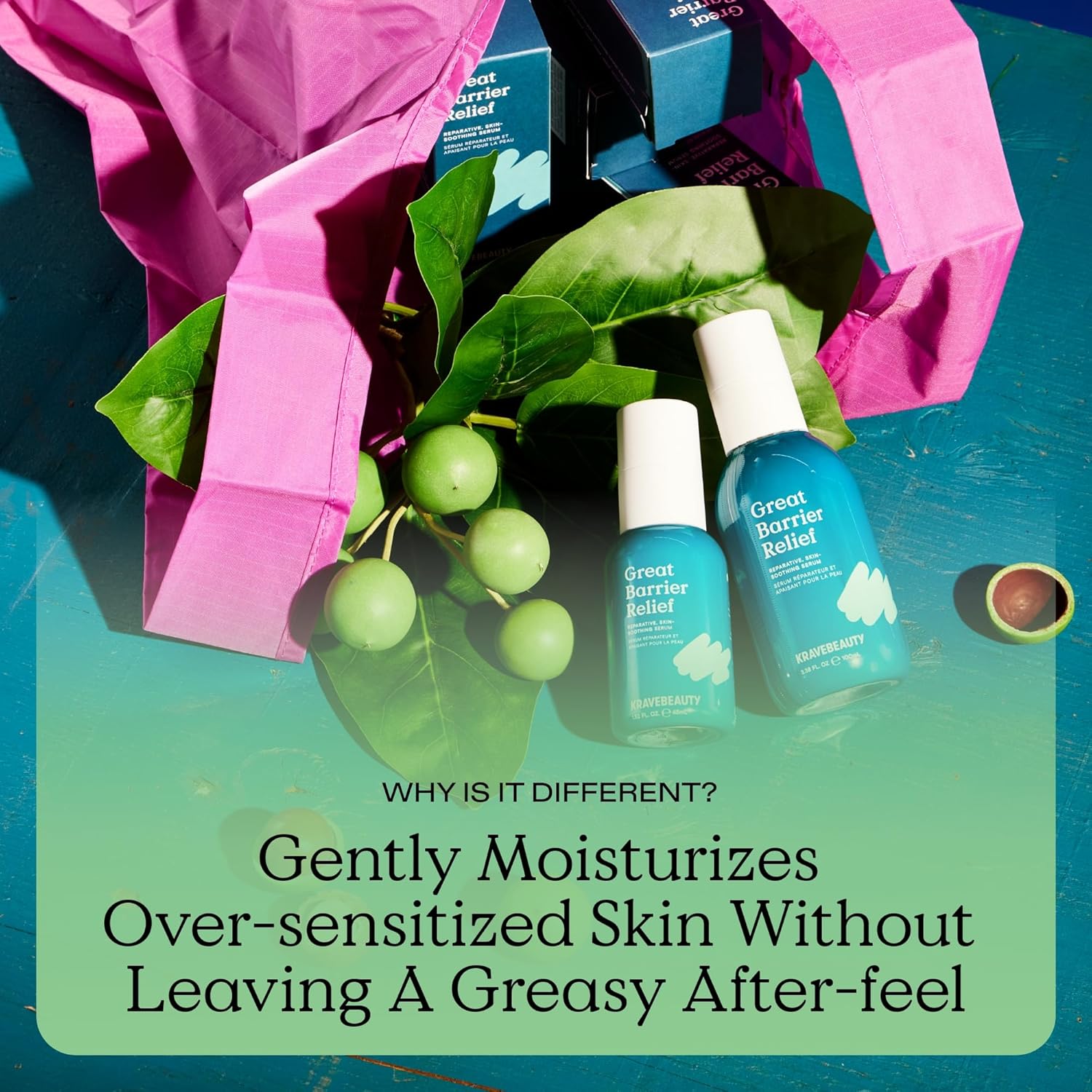 KraveBeauty New Great Barrier Relief, Soothing Skin Barrier Repair Serum, Contains Tamanu Oil to Soothe and Calm Redness, For All Skin Types, Vegan & Cruelty Free, 1.52 fl oz