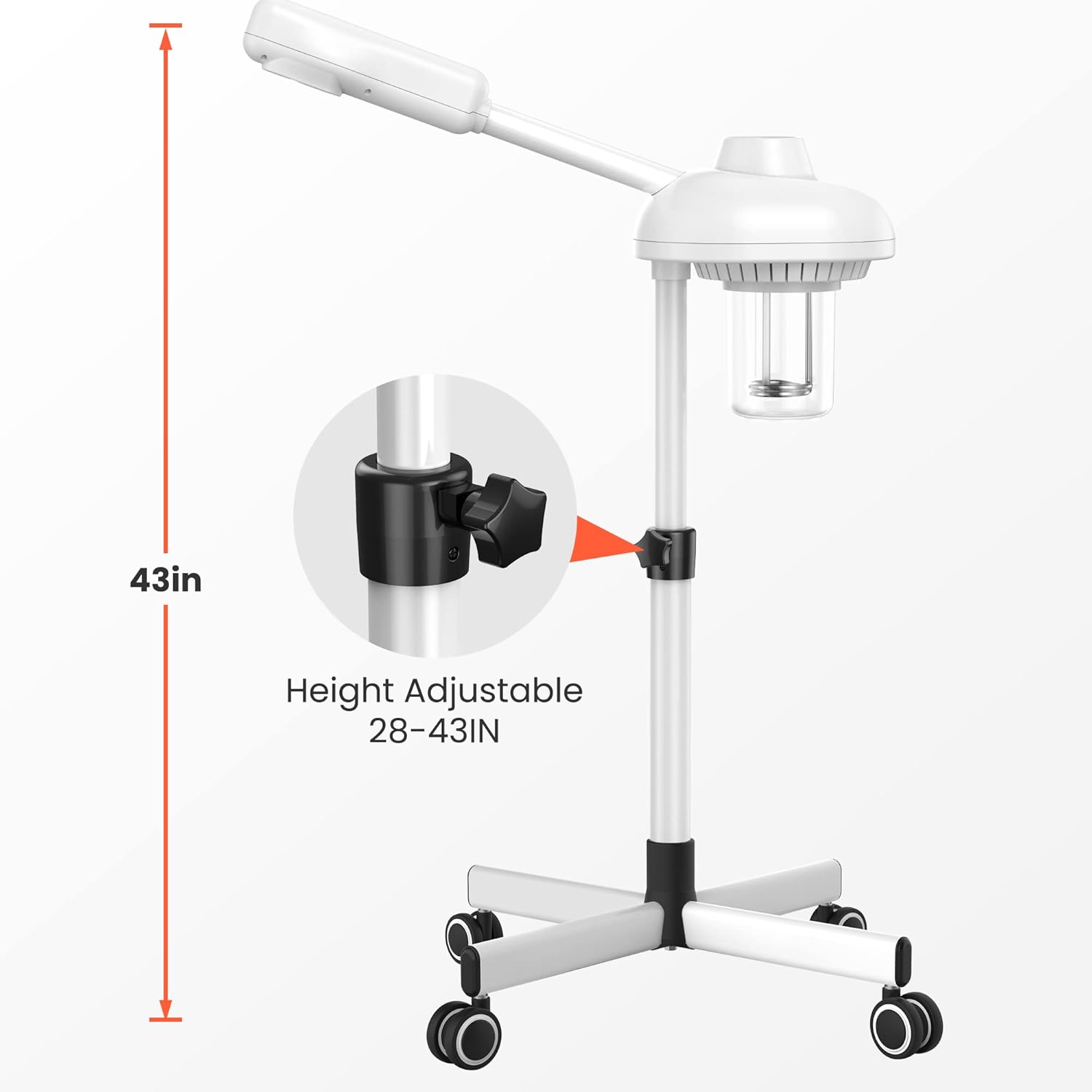 - Professional Choice: As a facial steamer for esthetician, 4-leg wheel stand base, easy to move around in the salon.Sturdy base provides good balance during operation or movement.