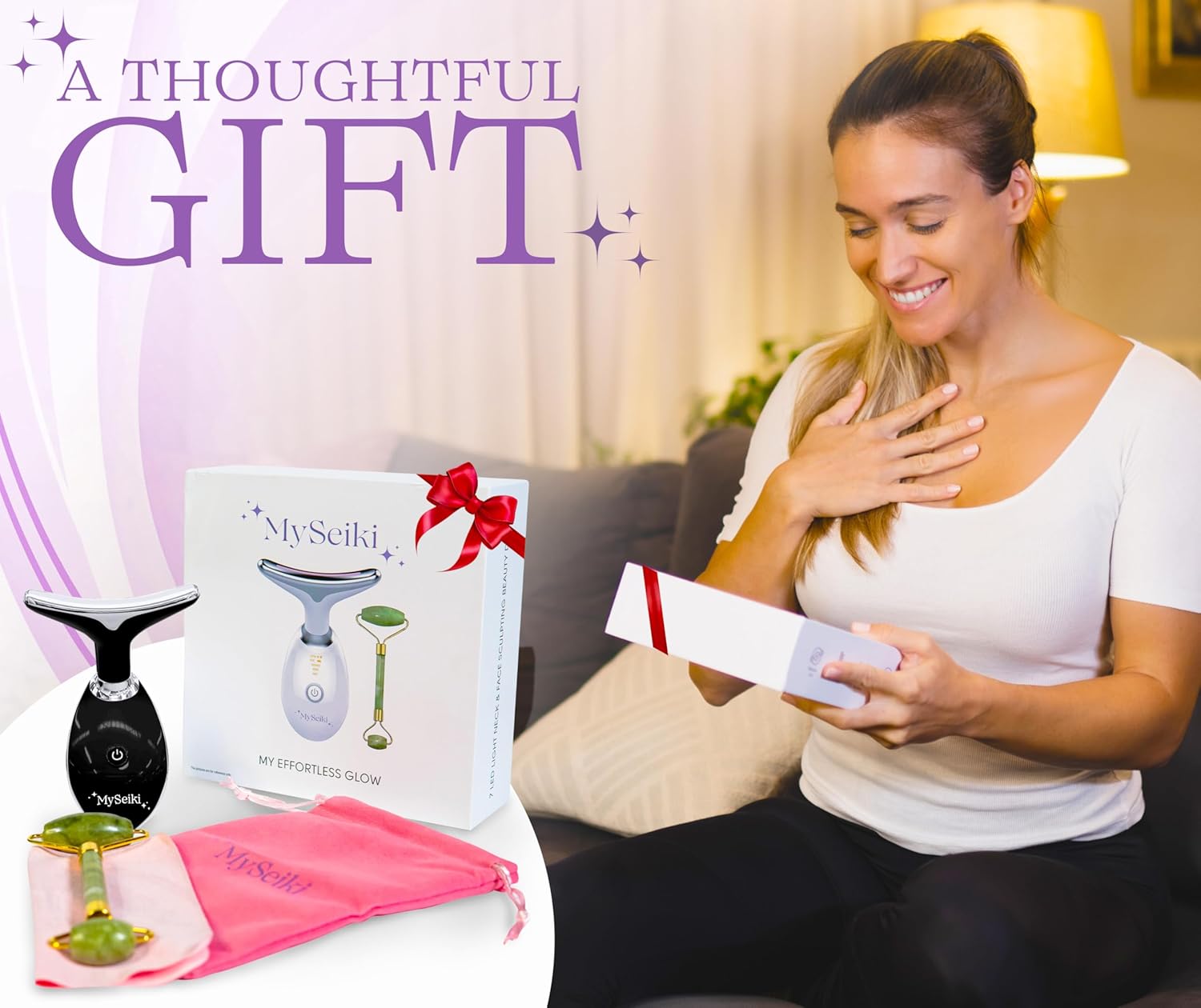 - 7-in-1 LED Light Technology Elevate your beauty routine with 7 LED light settings designed to enhance the appearance of your face and neck, promoting smoother, more radiant-looking skin.
