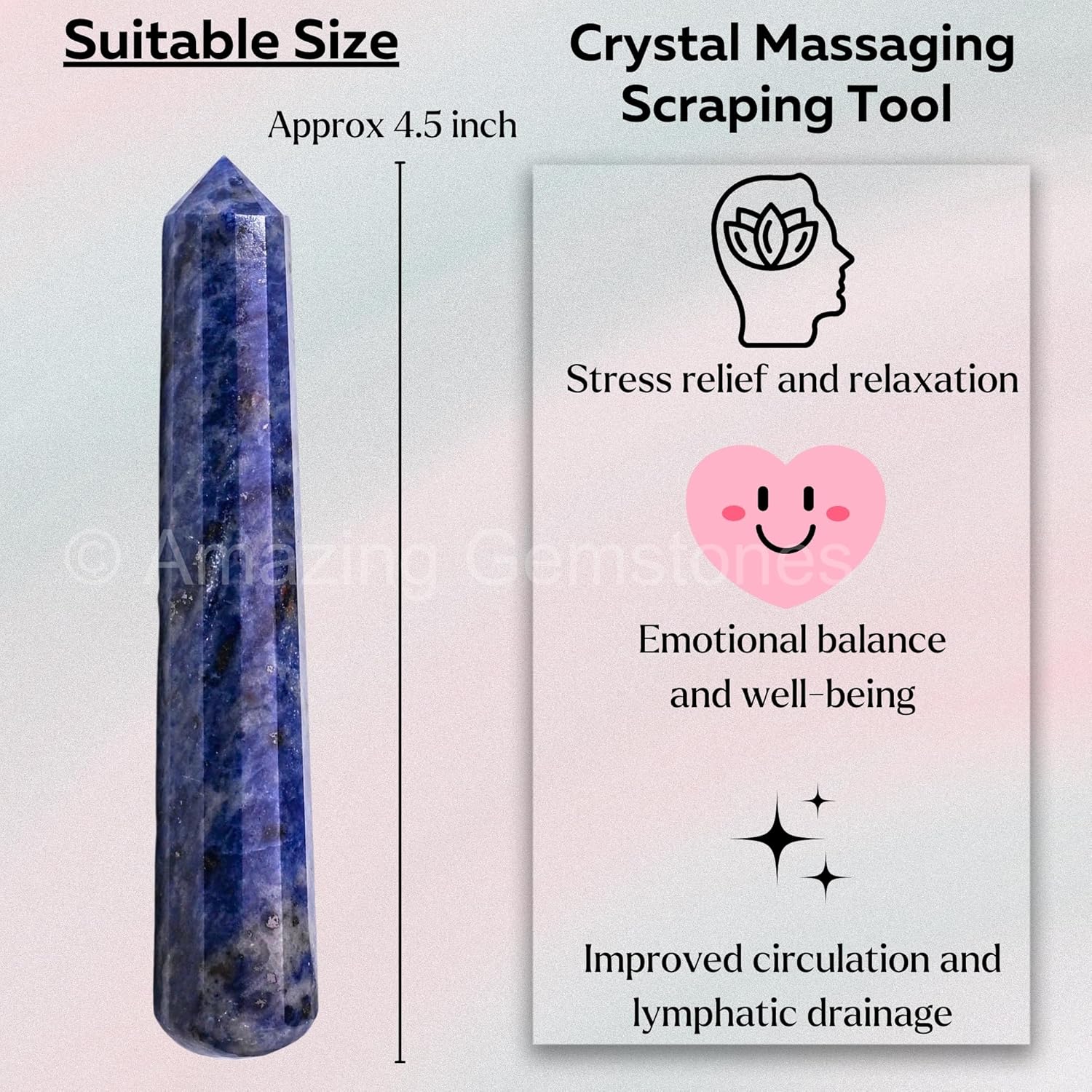 - Natural Healing Crystal Wand - This sodalite massage stick is infused with the natural energy of crystals to enhance your massage experience and are hand crafted, quality checked, earthly mined, organic and authentic.