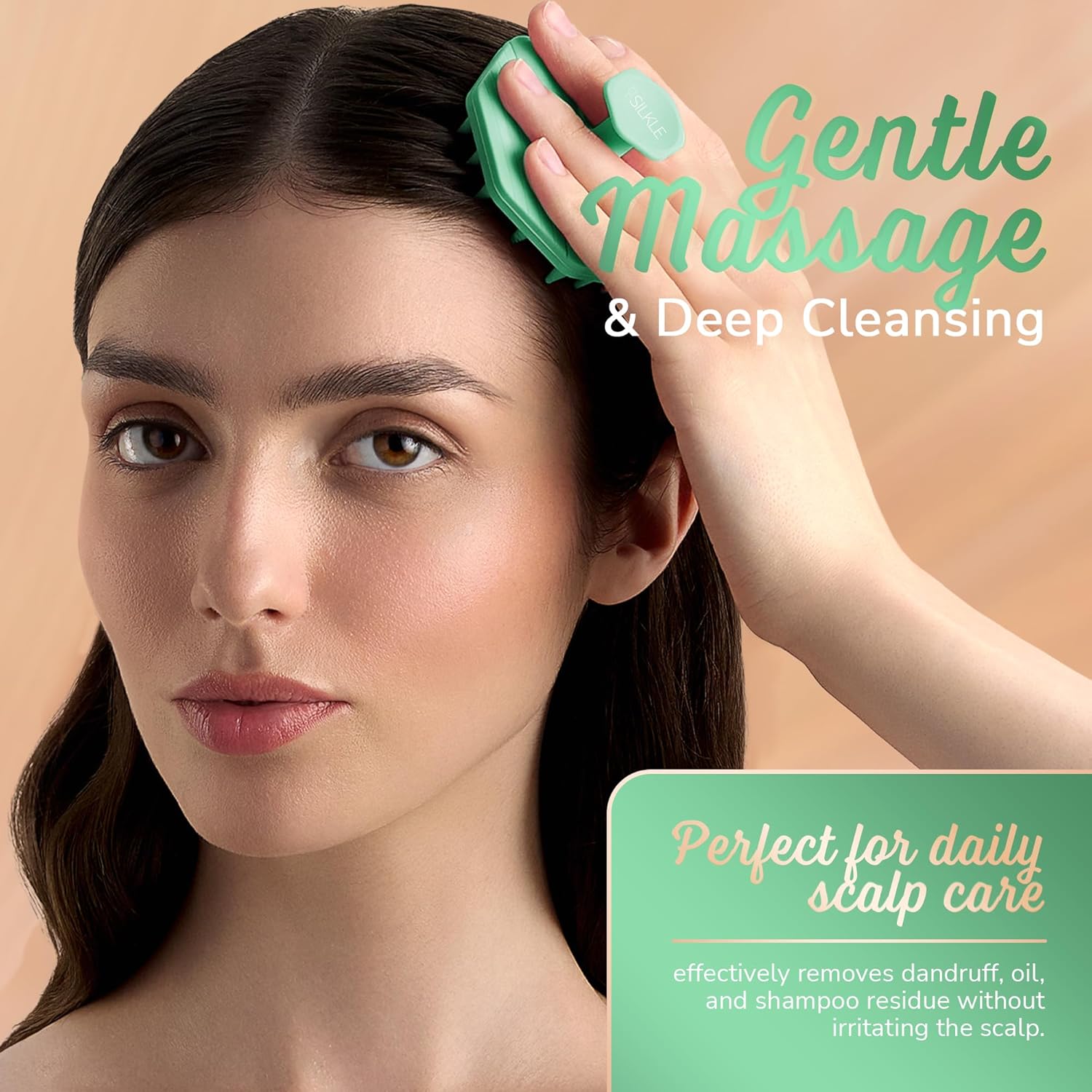 Silicone Scalp Scrubber - Massage Shampoo Brush, Soft Bristles for Hair Growth & Dandruff Removal - Ergonomic Design, Wet & Dry Use, Deep Cleansing Scalp Exfoliator for All Hair Types - Green