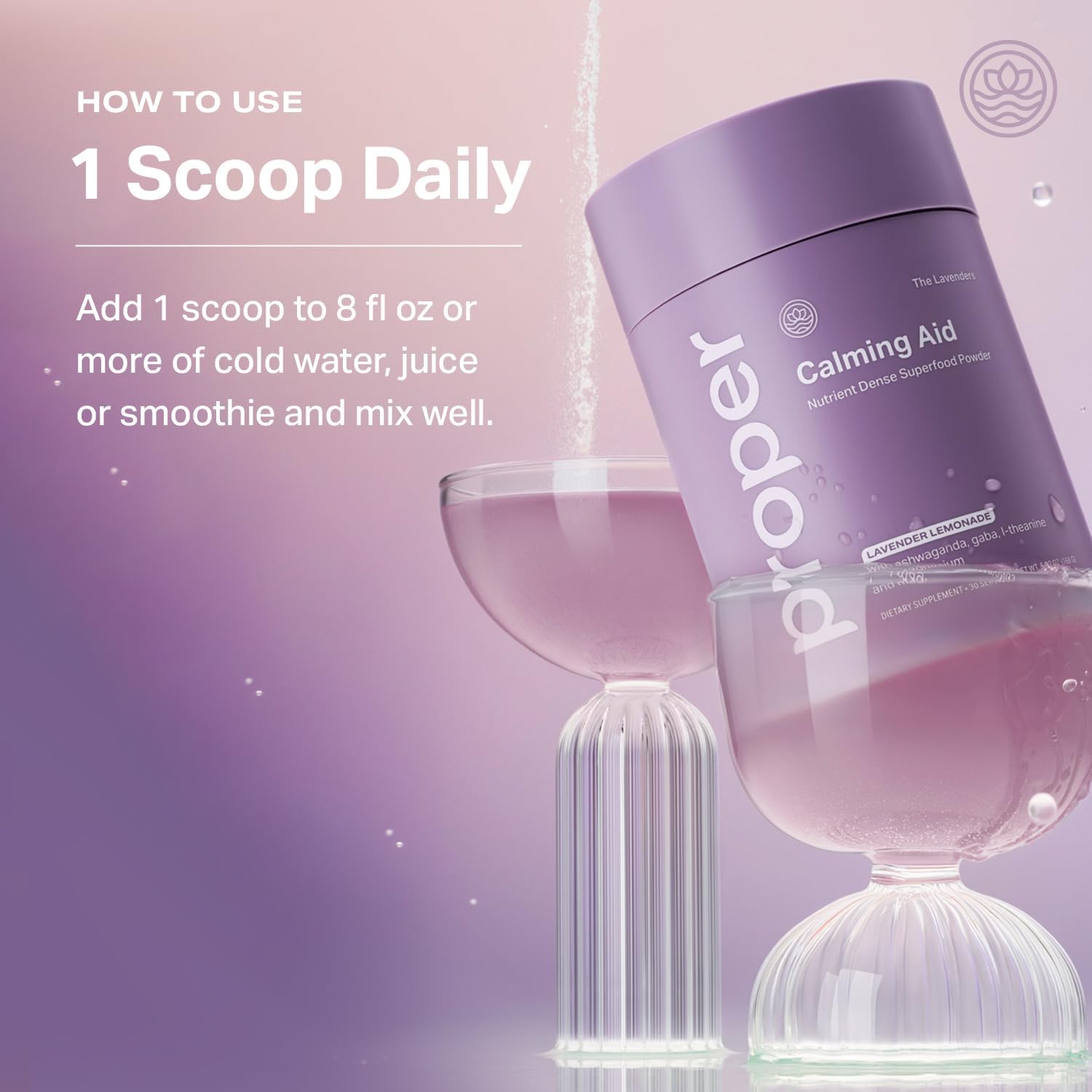Proper, The Lavenders Calming Aid. Sleep and Relaxation Drink Mix. GABA L-Theanine Supplement with Magnesium, Lavender, Lemon Balm, and Ashwagandha. Natural Calm Stress Support Supplements
