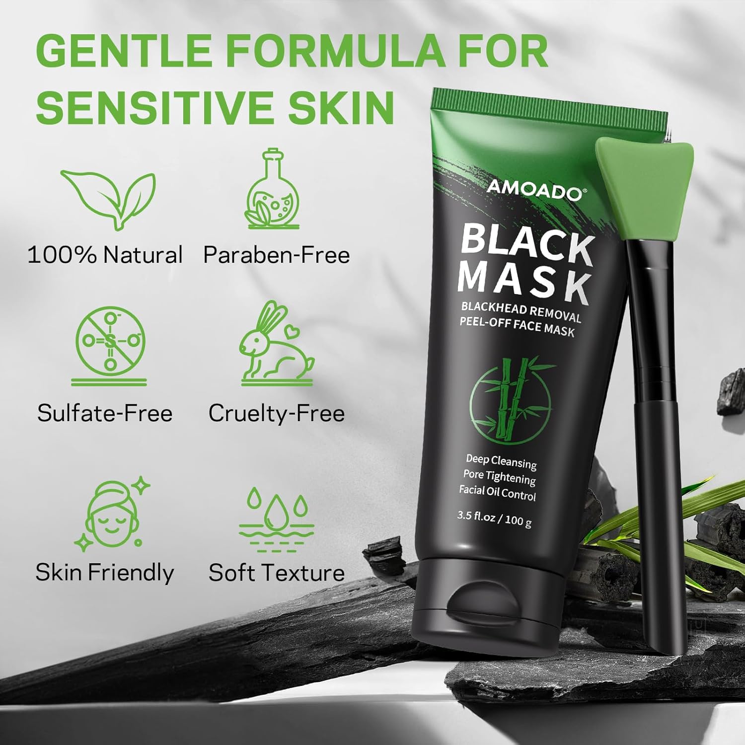 - 【Gentle for Removing Blackheads】❥AMOADO blackhead peel off mask formulated with bamboo charcoal and aloe extracts to gently detoxify, purify pores, and prevent blackhead formation. Also added aloe vera and witch hazel, our blackhead remover face mask is safe for various skin types be smoother, brighter, firmer. Non-irritating and chemical-free, it won’t over-dry or damage your skin.