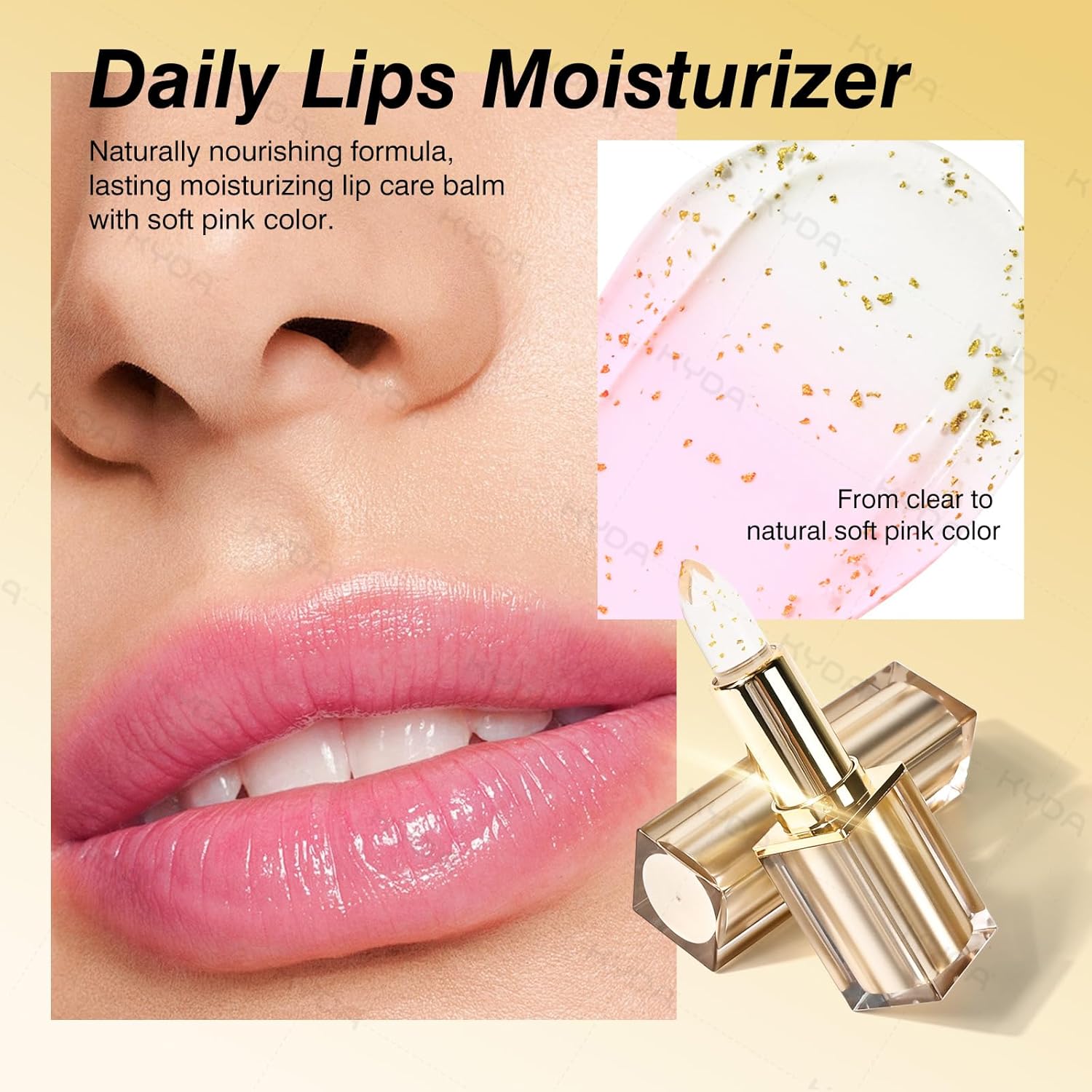KYDA 2 Pcs Transferproof Color Changing Lipstick with Gold Flakes, Changes from Clear to Sheer Pink, Moisturizing Tinted Lip Balm, Deep Nourishment, PH Changing Lipstick, Glossy Shine Lip Stain