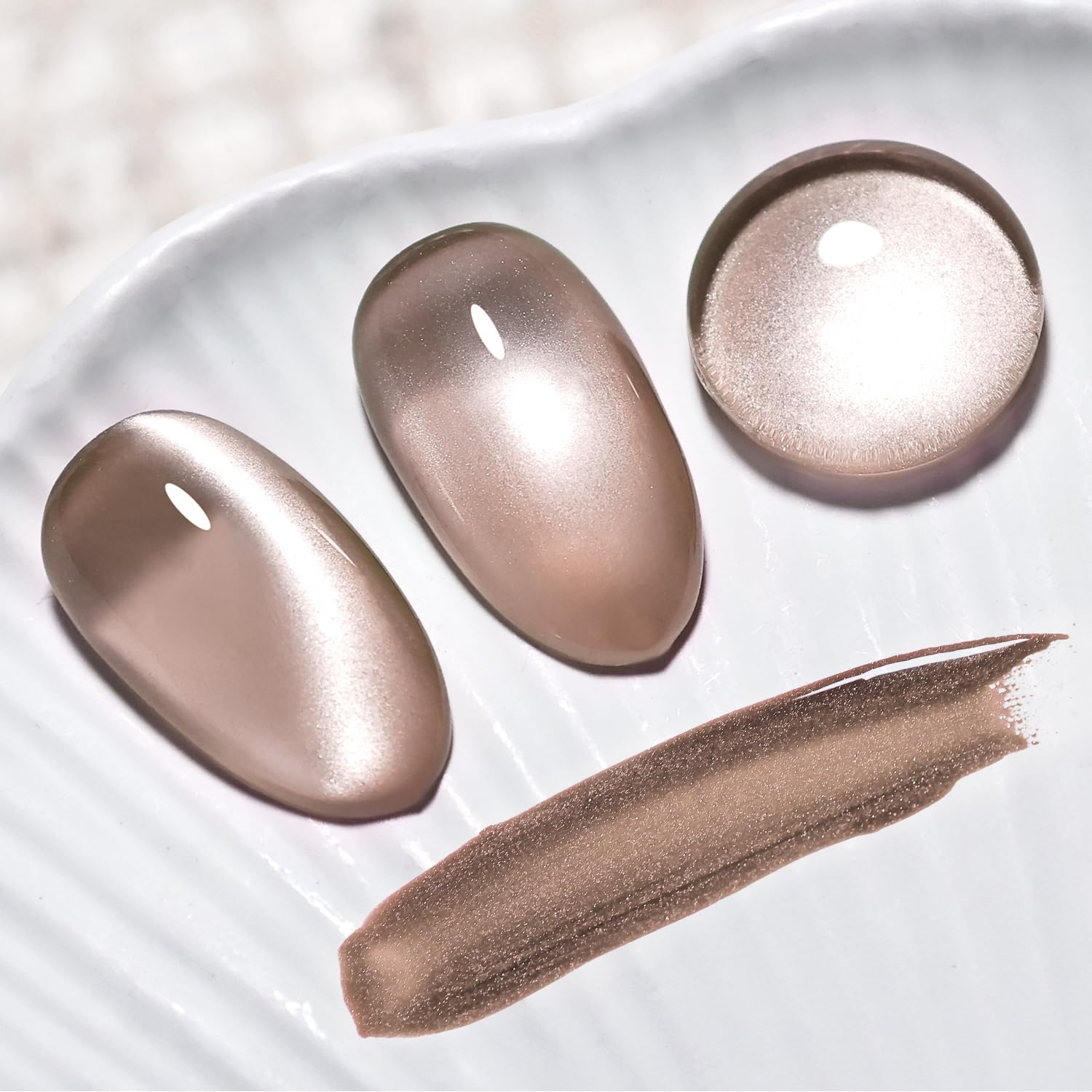 JODSONE Cat Eye Gel Nail Polish 16.5ml Brown Single Colors for Holographic Glitter Cat Eye with Magnet Reflective Translucent Need U V Lamp