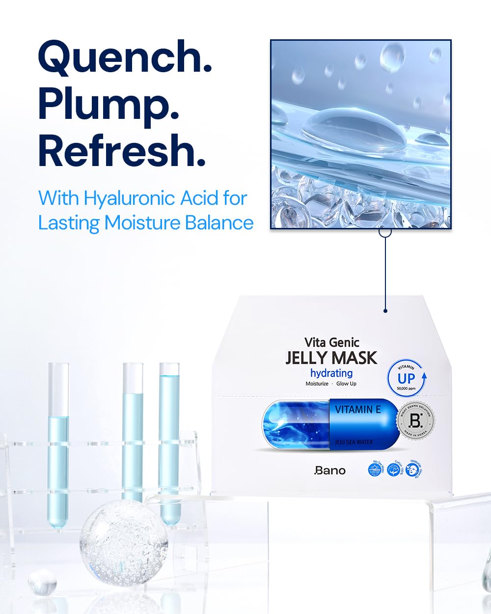 Bano Vita Genic Jelly Face Hydrating Mask 10EA – Firming Sheet Mask for Sensitive Skin, Korean Glass Skin Care with Mineral Water, Vitamin C & Niacinamide, Fragrance-Free