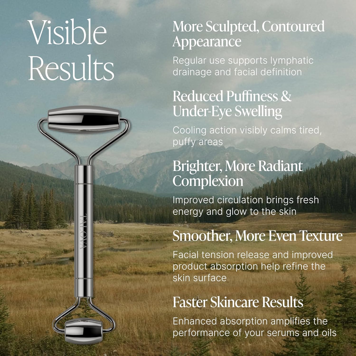 - Sleek, Medical-Grade Metal Design: Crafted from 304-grade metal stainless steel, TALOVA's roller features a smooth, non-porous finish that stays ice cold, offering a refreshing, hygienic touch for your daily skincare ritual.