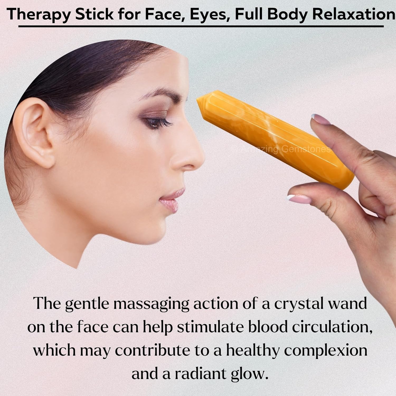 - Natural Healing Crystal Wand - This yellow calcite massage stick is infused with the natural energy of crystals to enhance your massage experience and are hand crafted, quality checked, earthly mined, organic and authentic.