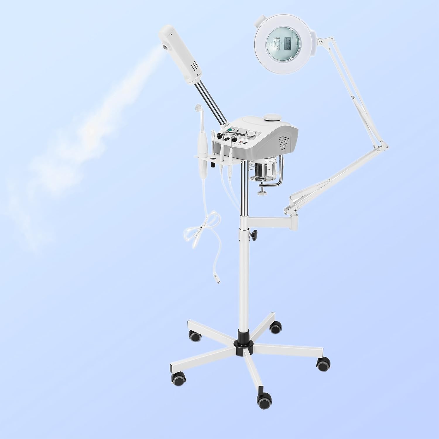 - 4-IN-1 FUNCTIONALITY: Features ozone steamer for deep cleansing, high-frequency treatment, magnifying lamp, and facial steamer for comprehensive skincare treatments