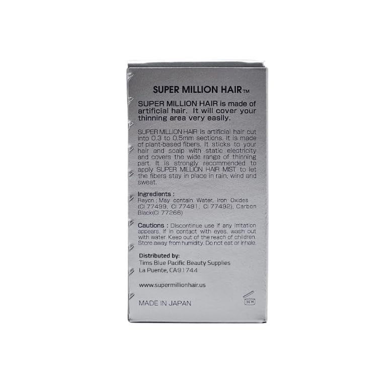 - MADE IN JAPAN - TRUSTED QUALITY SINCE 1986 - Crafted with premium ingredients and decades of expertise, trusted by professionals and individuals worldwide. Super Million Hair, trusted global brand, is the original fiber hair concealer made in Japan.