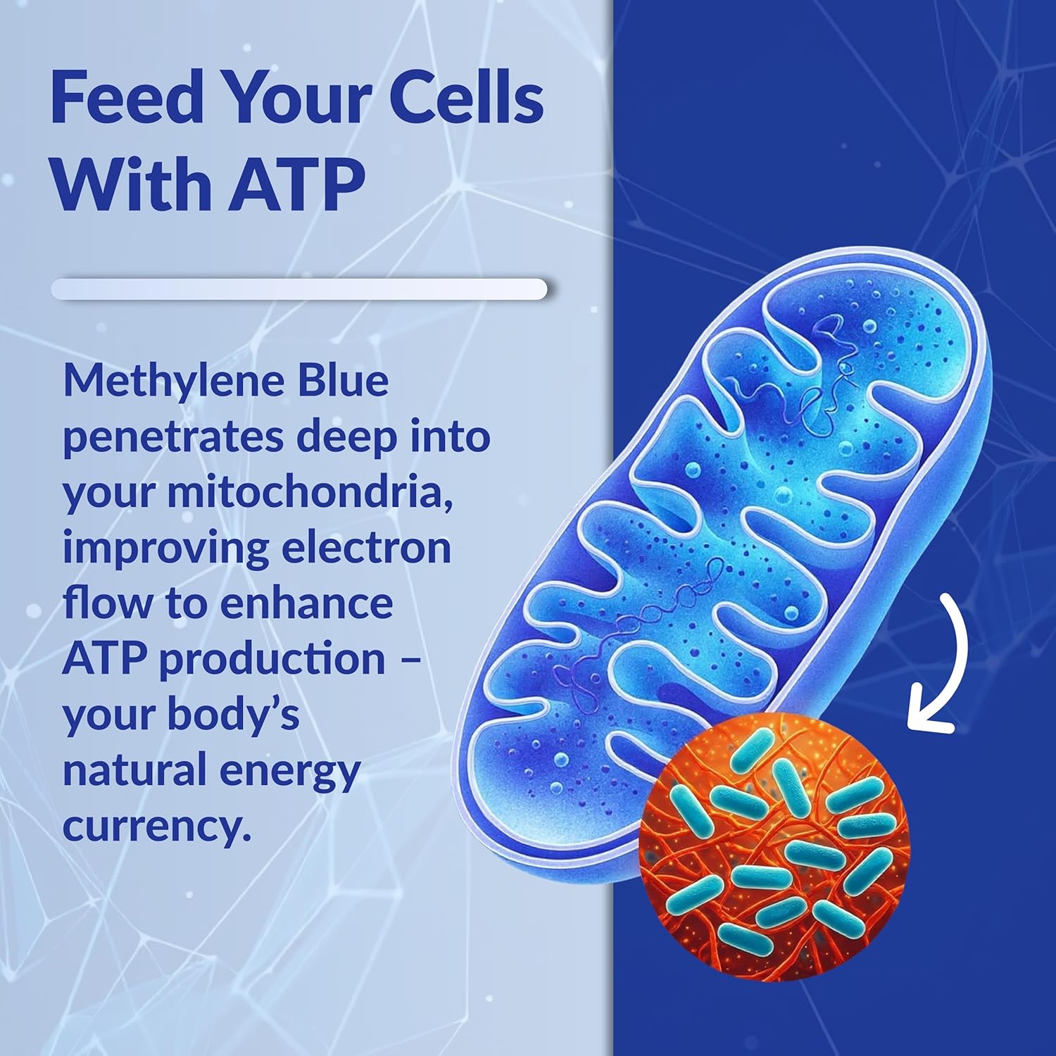 - Methylene blue is a well-researched compound that supports mitochondrial function, ATP production, and overall energy metabolism—often used in advanced biohacking and wellness routines.
